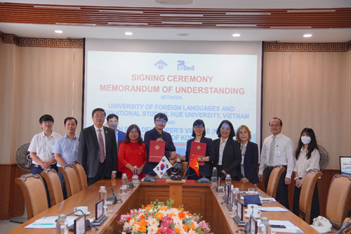 HUFLIS-On September 8, 2022, University of Foreign Languages and International Studies, Hue University (HUFLIS) and NSDevil Co., Ltd., South Korea, signed a Memorandum of Understanding (MoU) to build the first step for the collaboration between the two parties. The MoU was signed by Assoc. Prof. Dr Pham Thi Hong Nhung, Rector of HUFL and Mr. Seungyong Shin (Cavin Shin), NSDevil’s chairman of Global strategy and R&D supreme Committee.