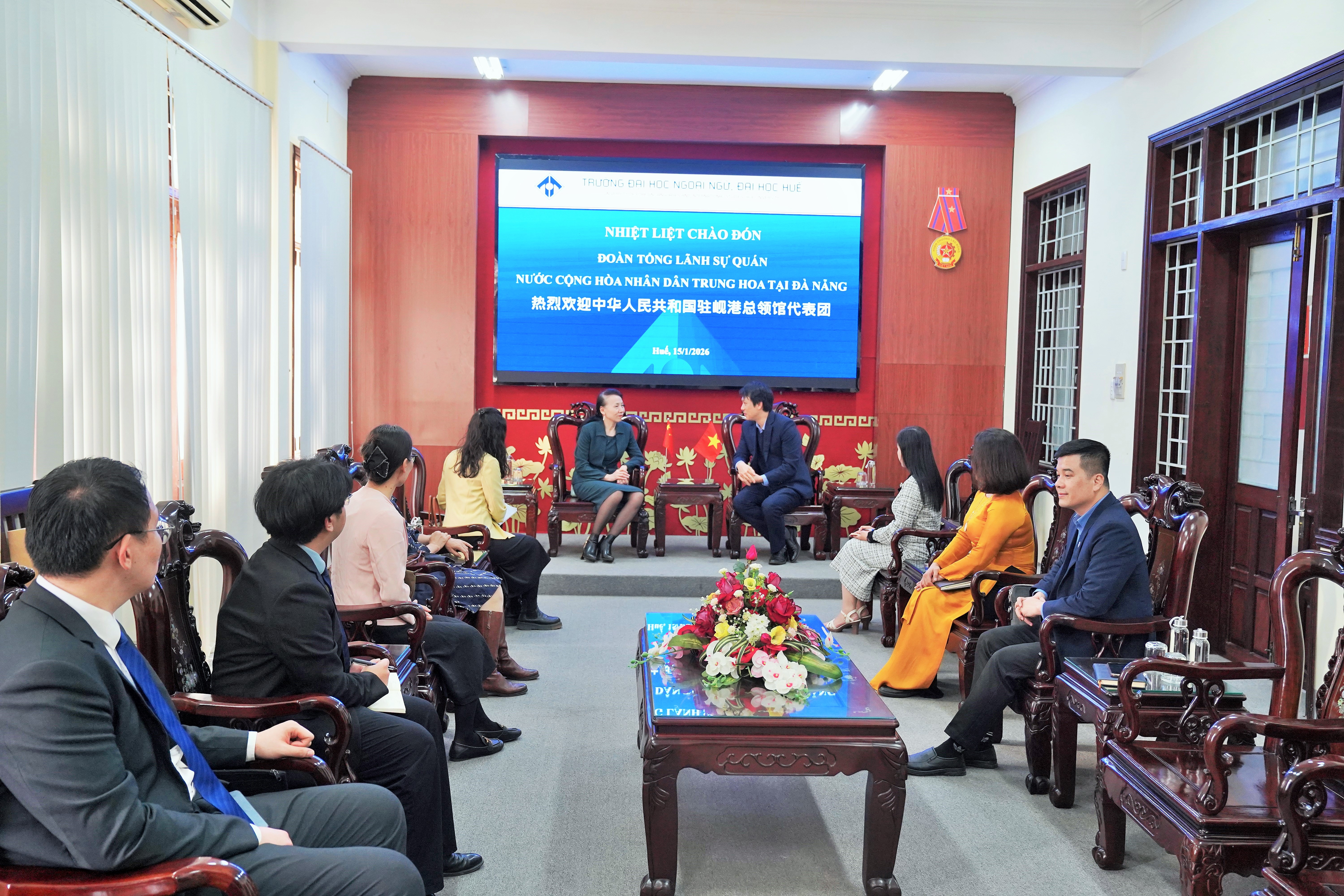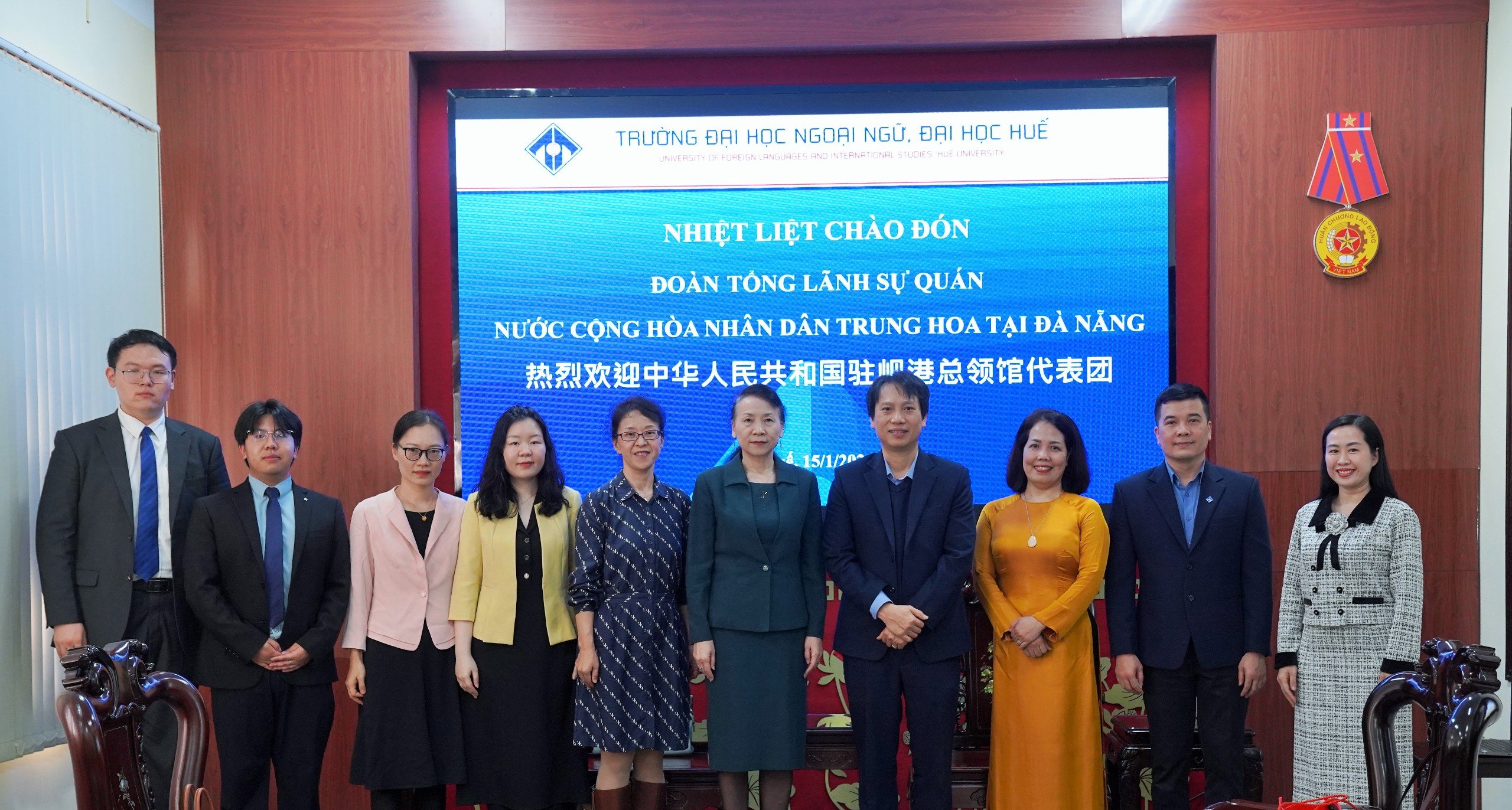 On the afternoon of January 15, 2026, the University of Foreign Languages and International Studies, Hue University hosted a reception for the delegation from the Consulate General of the People’s Republic of China in Da Nang, led by Consul General Ms. Dong Biyu. The delegation paid a courtesy visit to the University and participated in exchanges with lecturers and students of the Faculty of Chinese.
