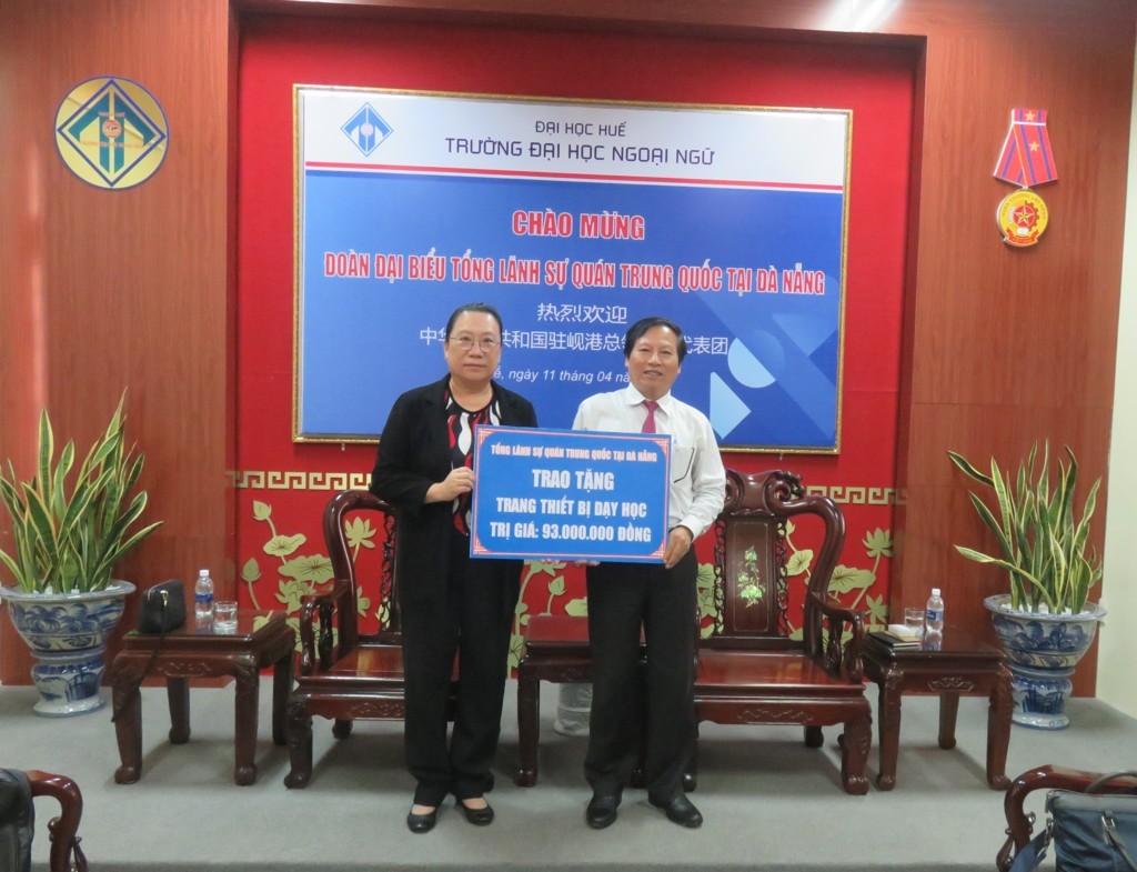 On the afternoon of April 12th, 2019, the delegation of Chinese Consulate General in Da Nang led by Consul General Xi Hui, visited the University of Foreign Languages, Hue University and presented the equipment to Chinese Faculty of the University.