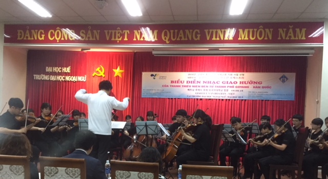 On the afternoon of May 15, 2018, the Ullim Symphony Orchestra, Goyang City, Korea paid a working visit to the University of Foreign Languages - Hue University and performed a symphony concert with students of Korean Language and Culture Faculty.