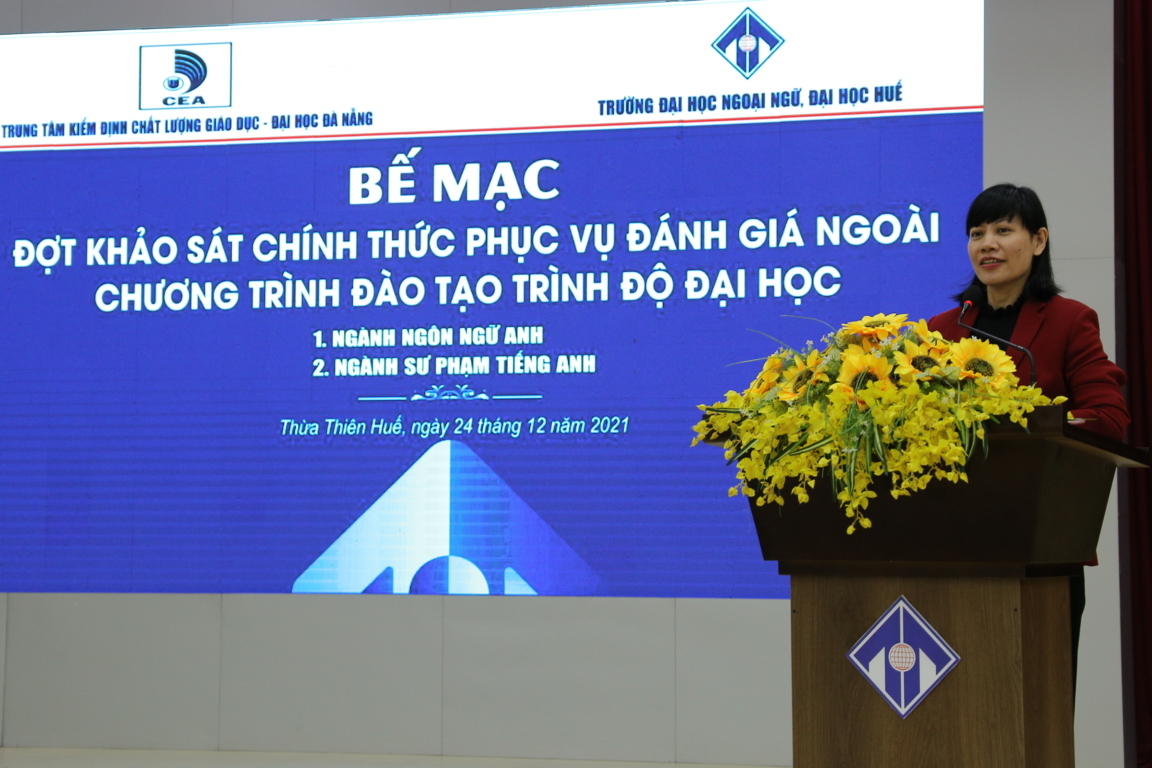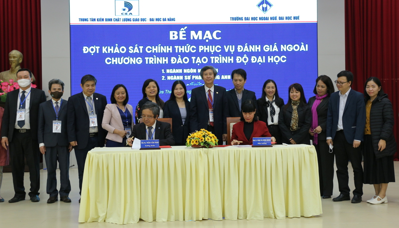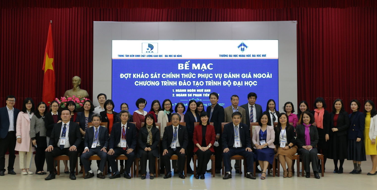 HUFL-Ngày 24/12, Trường Đại học Ngoại ngữ, Đại học Huế phối hợp với Trung tâm Kiểm định chất lượng giáo dục (KĐCLGD) - Đại học Đà Nẵng (ĐHĐN) tổ chức lễ bế mạc đợt khảo sát chính thức phục vụ đánh giá ngoài chất lượng chương trình đào tạo trình độ đại học ngành Sư phạm Tiếng Anh và ngành Ngôn ngữ Anh.