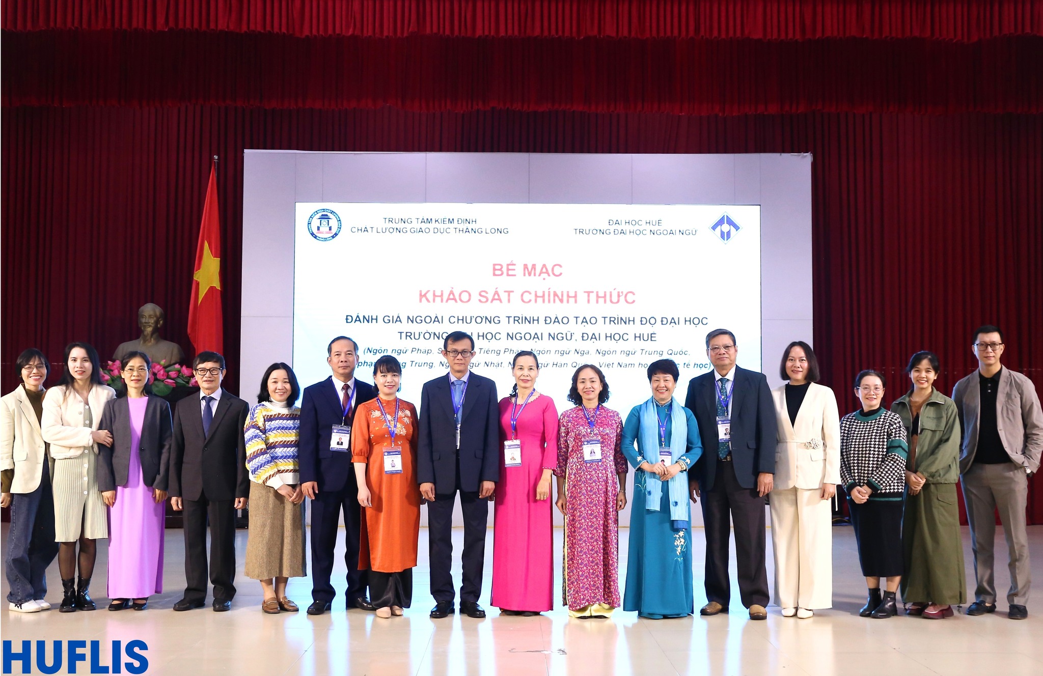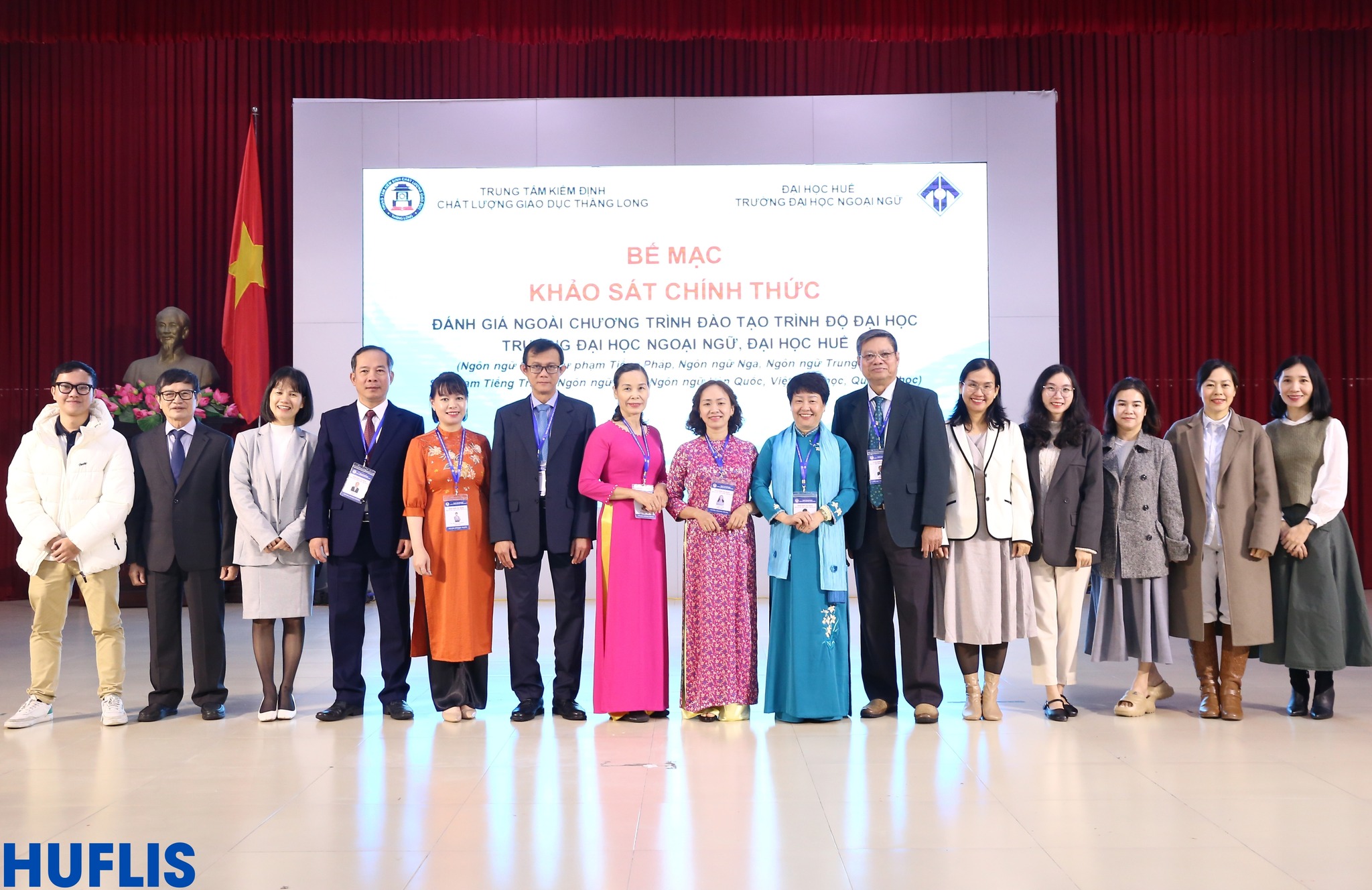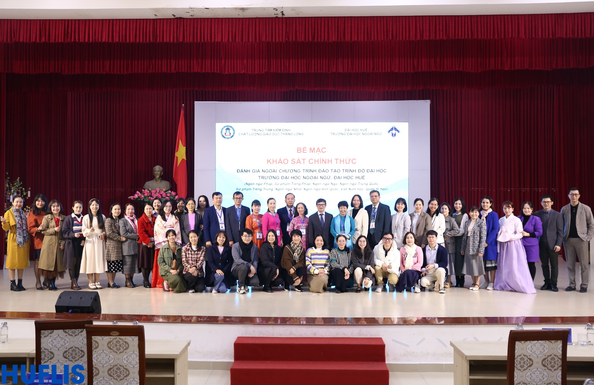 HUFLIS- Sáng ngày 30/12/2024, Trường Đại học Ngoại ngữ, Đại học Huế đã phối hợp với Trung tâm Kiểm định chất lượng giáo dục Thăng Long tổ chức Bế mạc Khảo sát chính thức Đánh giá ngoài 09 chương trình đào tạo trình độ đại học (Ngôn ngữ Pháp, Sư phạm Tiếng Pháp, Ngôn ngữ Nga, Ngôn ngữ Trung Quốc, Sư phạm Tiếng Trung, Ngôn ngữ Nhật, Ngôn ngữ Hàn Quốc, Việt Nam học, Quốc tế học) sau hơn 4 ngày làm việc khẩn trương, nghiêm túc, trách nhiệm và hiệu quả.
