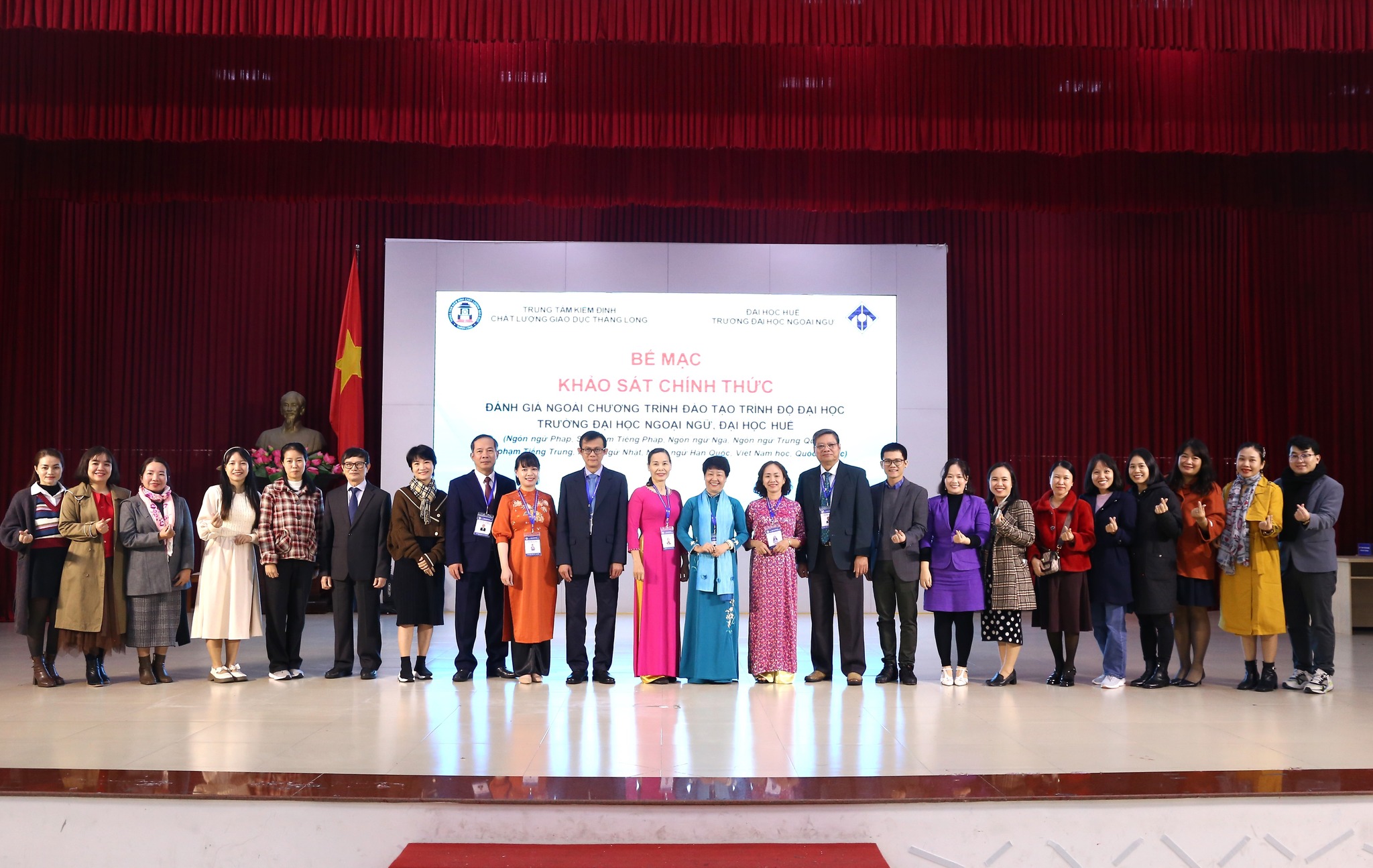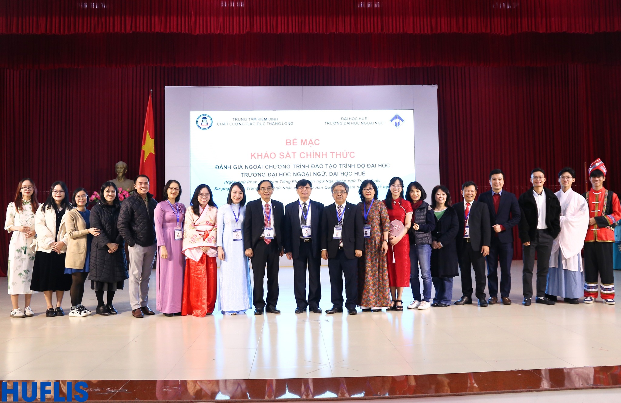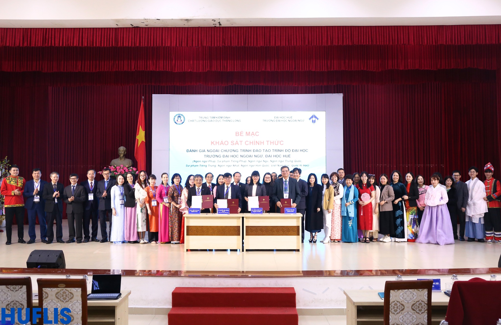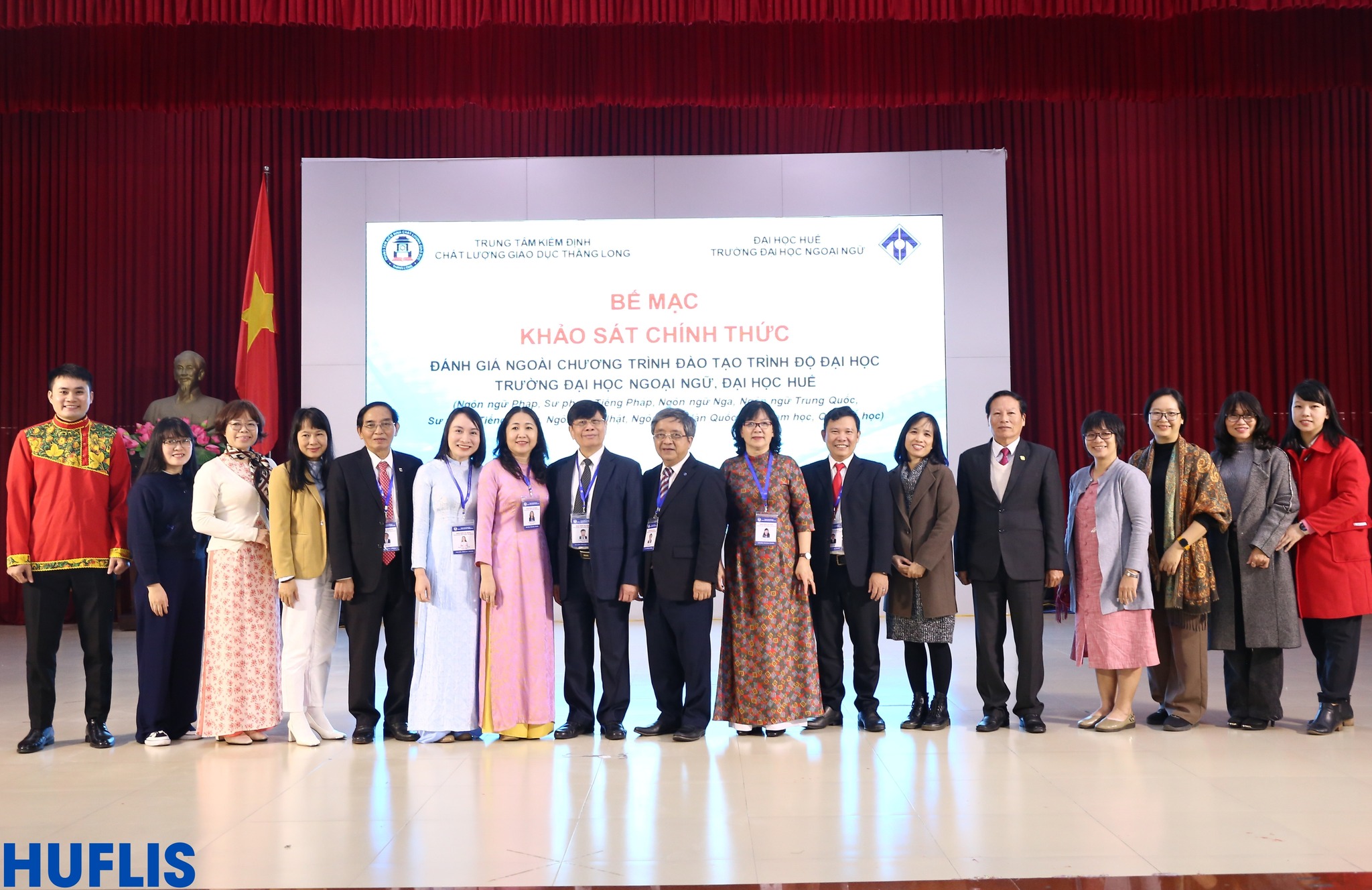 HUFLIS- Sáng ngày 30/12/2024, Trường Đại học Ngoại ngữ, Đại học Huế đã phối hợp với Trung tâm Kiểm định chất lượng giáo dục Thăng Long tổ chức Bế mạc Khảo sát chính thức Đánh giá ngoài 09 chương trình đào tạo trình độ đại học (Ngôn ngữ Pháp, Sư phạm Tiếng Pháp, Ngôn ngữ Nga, Ngôn ngữ Trung Quốc, Sư phạm Tiếng Trung, Ngôn ngữ Nhật, Ngôn ngữ Hàn Quốc, Việt Nam học, Quốc tế học) sau hơn 4 ngày làm việc khẩn trương, nghiêm túc, trách nhiệm và hiệu quả.