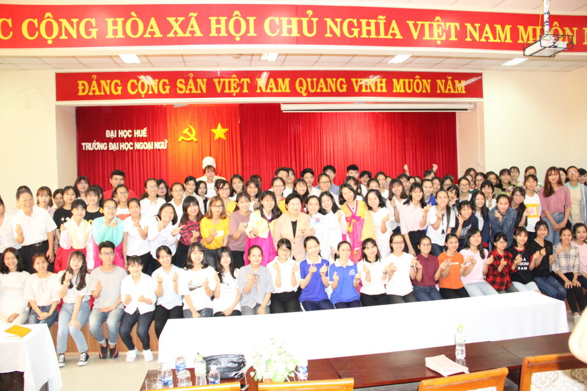 Sau buổi tiếp, Bà Chung Huyn Back đã giao lưu với sinh viên Khoa Ngôn ngữ & Văn Hàn Quốc và đã có bài chia sẽ về chủ đề những chính sách giới tính và vai trò của phụ nữ ở Hàn Quốc. Đây là cơ hội nhằm tăng cường quan hệ hợp tác giữa hai nước Hàn Quốc - Việt Nam.
