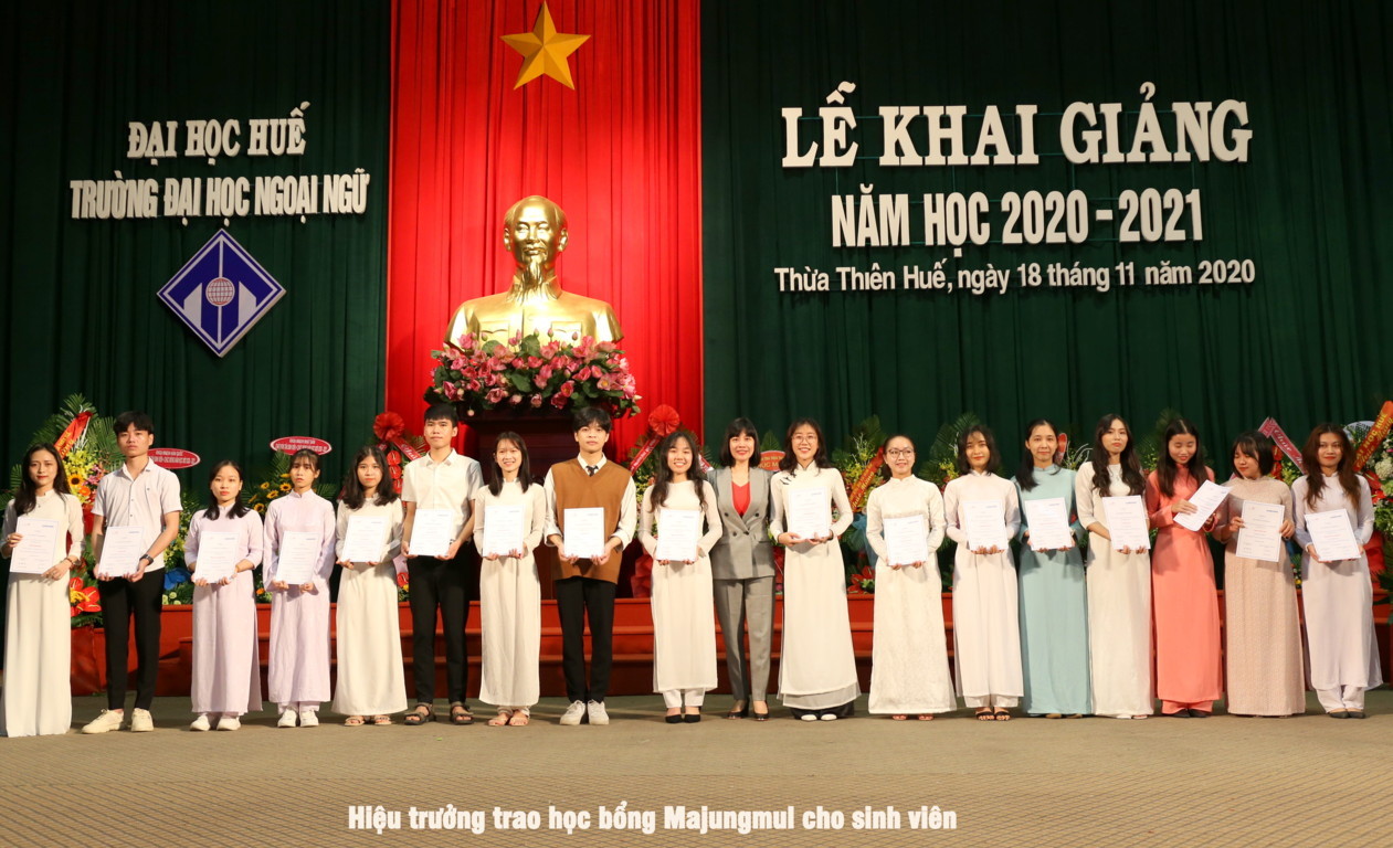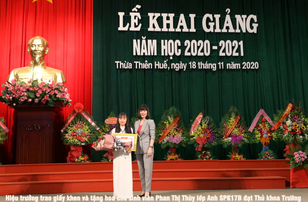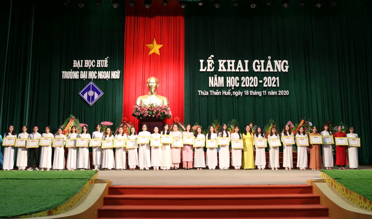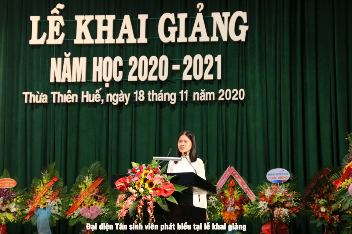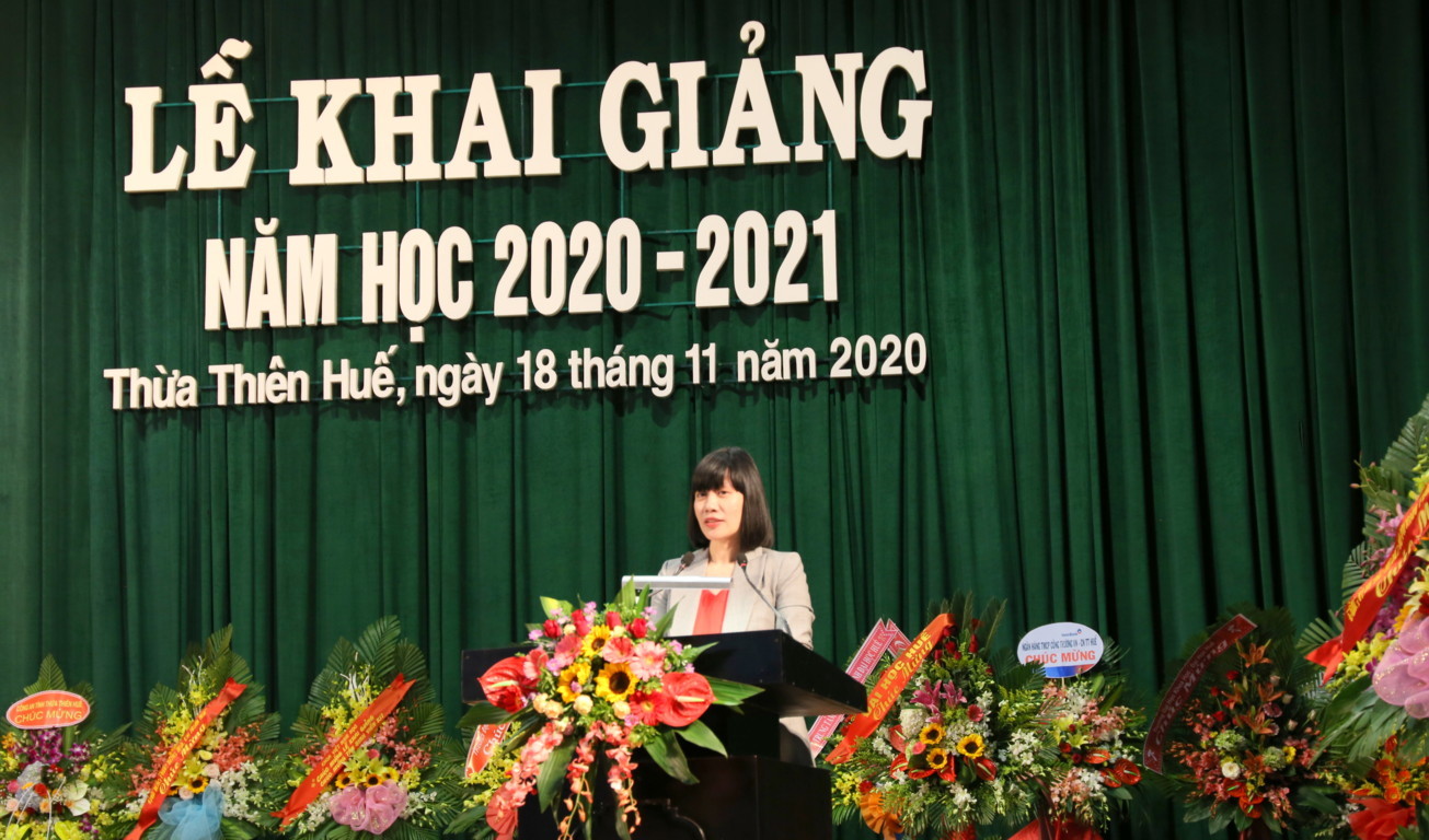 Khai giảng năm học 2020-2021, Trường Đại học Ngoại ngữ - Đại học Huế quyết tâm thực hiện thắng lợi kế hoạch năm học đã đề ra, tiếp tục thực hiện đổi mới căn bản, toàn diện giáo dục, đổi mới cơ chế quản lý giáo dục đại học, tăng cường công tác đào tạo, bảo đảm chất lượng giáo dục để tiếp tục khẳng định thương hiệu, uy tín của Nhà trường. Thay mặt cho CBGV  Nhà trường PGS.TS Phạm Thi Hồng Nhung chia sẻ đến tân sinh viên những điều trước khi bước vào giảng đường đại học: Thứ nhất các em nhớ rằng những gì cần học trong những năm tháng ở trường đại học không chỉ là tri thức, kiến thức khoa học; Thứ hai cần luôn nhắc mình rằng thầy cô giáo, giáo trình là quan trọng nhưng không phải là nguồn tri thức duy nhất; Thứ ba cần nhớ rằng tự học là chìa khóa của thành công ở nhiều bậc học, đặc biệt là ở đại học và cả trong sự nghiệp của các em sau này; Thứ tư cần xác định năng lực ngoại ngữ là nền tảng, là yếu tố có tính quyết định đối với kết quả học tập các chuyên ngành tại trường Đại học Ngoại ngữ; Thứ năm các ngành học ngoại ngữ sẽ mở ra những cách nhìn mới về thế giới, những cách tiếp cận mới nhưng cách nhìn nào cũng phải dựa trên việc trân trọng, trân quý giá trị của dân tộc mình, trân trọng tổ quốc, quê hương, gia đình và người thân; Thứ sáu, cần rèn luyện và xây dựng cho mình một tác phong năng động và linh hoạt phù hợp với tính chất ngành học; Điều cuối cùng đó là các em cần có kỹ năng đối phó với thiên tai, dịch bệnh.