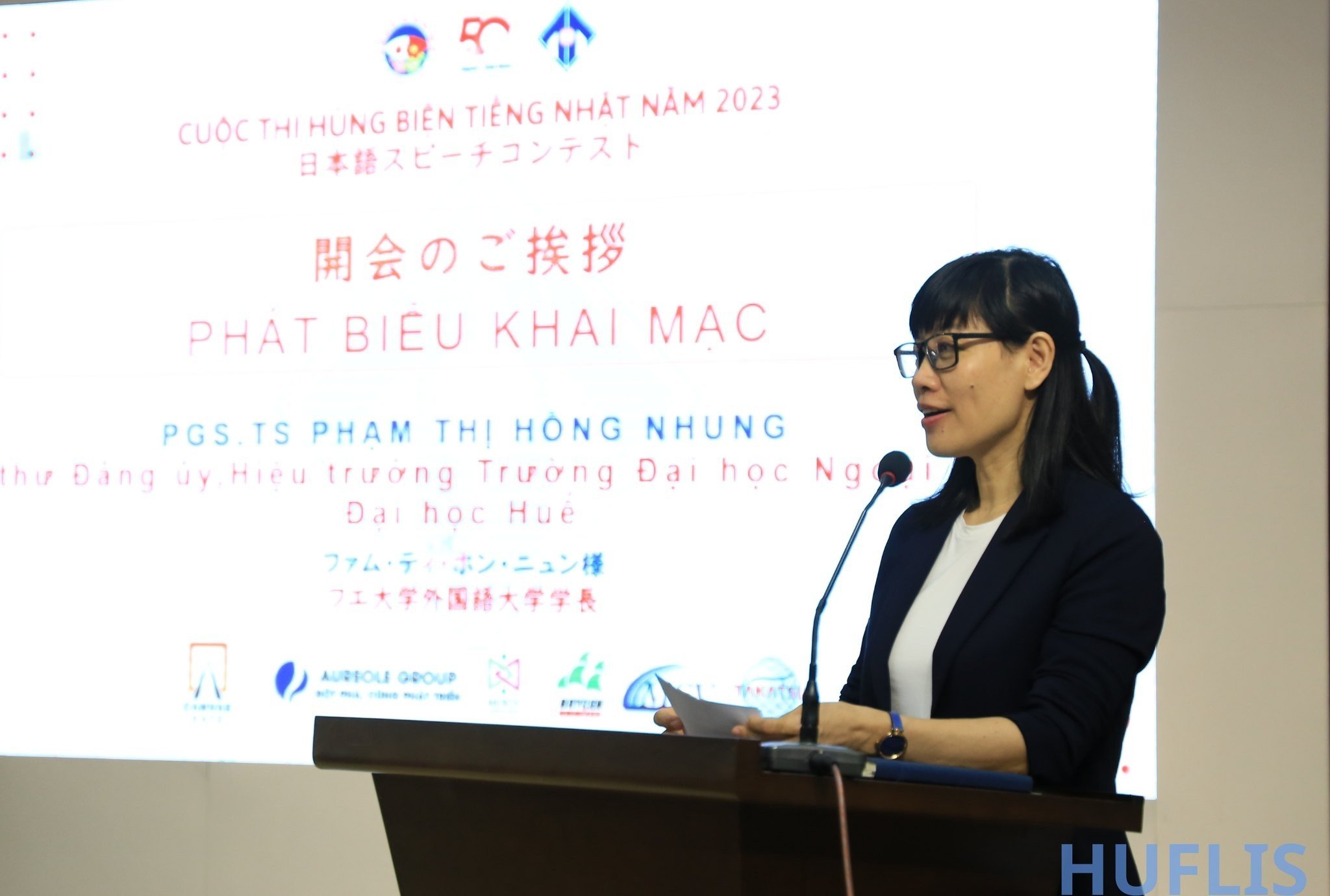 Phát biểu tại lễ khai mạc cuộc thi hùng biện, PGS.TS. Phạm Thị Hồng Nhung khẳng định, trong nhiều năm qua, những cuộc thị hùng biện tiếng Nhật mà Trường Đại học Ngoại ngữ, Đại học Huế tổ chức luôn thu hút được sự quan tâm và tham gia của nhiều học sinh, sinh viên và những người yêu thích văn hóa, con người, ngôn ngữ Nhật Bản. Trường mong muốn thông qua các hoạt động này, học sinh, sinh viên, người dân Việt Nam sẽ hiểu hơn về tiếng Nhật, về văn hóa, con người Nhật bản, từ đó là cơ sở cho sự tôn trọng, tình hữu nghị mà nhân dân hai đất nước dành cho nhau.