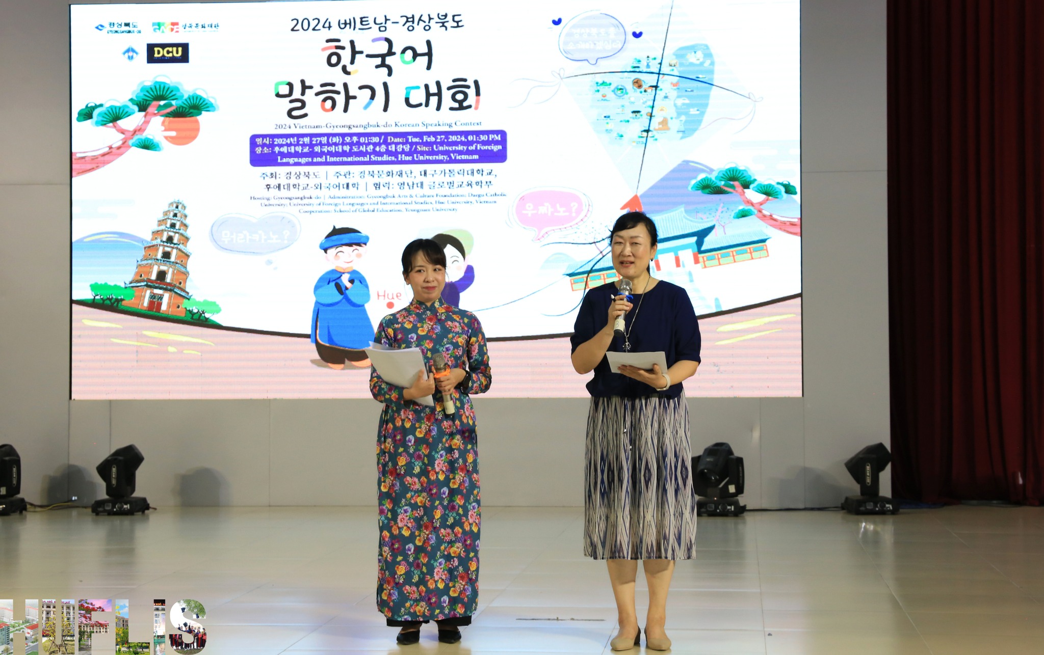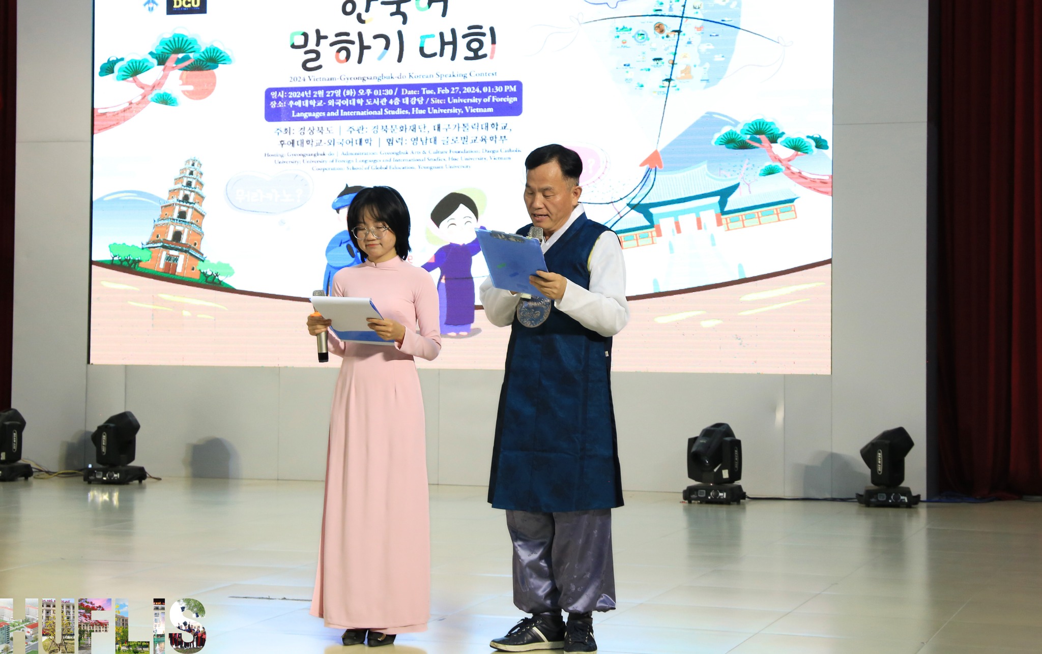 HUFLIS - Chiều ngày 27/02/2024, Trường Đại học Ngoại ngữ, Đại học Huế phối hợp với Trường Đại học Yeungnam, Trường Đại học Daegu Catholic và Quỹ giao lưu văn hóa tỉnh Gyeongbuk đồng tổ chức vòng chung khảo “Cuộc thi Hùng biện tiếng Hàn Gyeongsangbuk-do năm 2024” do Tỉnh Gyeongbuk, Hàn Quốc tài trợ.