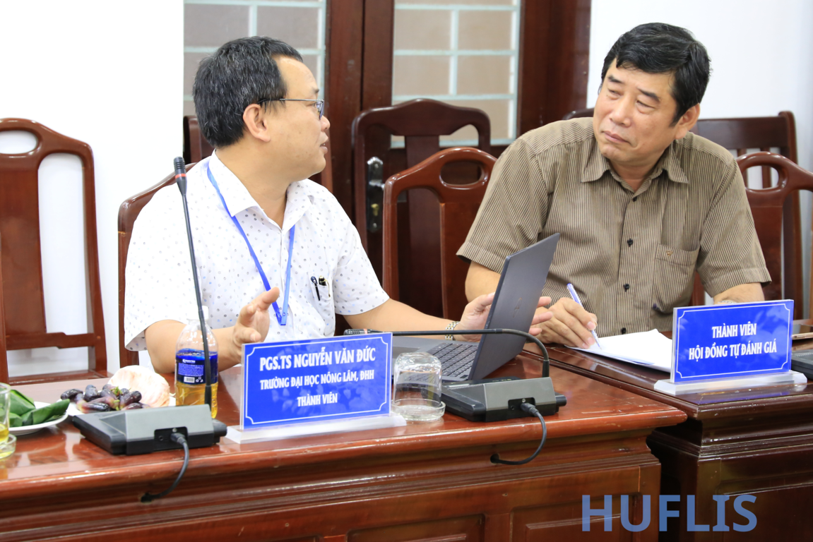 Tại buổi làm việc, PGS. TS Võ Viết Minh Nhật, thành viên Thường trực Đoàn đánh giá nội bộ đã trao đổi nội dung buổi khảo sát chính thức phục vụ đánh giá nội bộ cấp Đại học Huế, nhấn mạnh mục tiêu hỗ trợ Trường nâng cao hiệu quả tự đánh giá cơ sở đào tạo (chu kỳ 2). Đại diện Ban Giám hiệu, TS. Nguyễn Hồ Hoàng Thủy, Phó Hiệu trưởng phát biểu chào mừng, khẳng định sự quan tâm của Nhà trường đối với công tác kiểm định cũng như bày tỏ mong muốn nhận được sự hỗ trợ từ phía Đại học Huế để báo cáo Tự đánh giá Trường (chu kỳ 2) được thực hiện tốt hơn, nâng cao chất lượng giáo dục của Nhà trường, đáp ứng yêu cầu của xã hội.