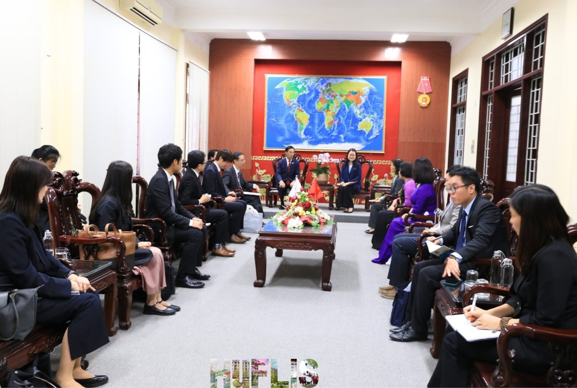 Tham dự đón tiếp đoàn, phía Trường Đại học Ngoại ngữ có Tiến sĩ Nguyễn Hồ Hoàng Thủy, Phó Hiệu trưởng Nhà trường, cùng đại diện lãnh đạo các đơn vị liên quan. Tại buổi tiếp đón, TS. Nguyễn Hồ Hoàng Thủy đã nồng nhiệt chào đón các đại biểu đoàn công tác Phủ Kyoto đến thăm Trường Đại học Ngoại ngữ; đồng thời giới thiệu về Trường, về chương trình đào tạo ngôn ngữ và văn hóa Nhật Bản tại Trường, cũng như các mối quan hệ hợp tác Trường đã thực hiện với các tổ chức, cơ sở giáo dục và doanh nghiệp tại Nhật Bản. Cũng nhân dịp này, TS. Nguyễn Hồ Hoàng Thủy bày tỏ mong muốn nhận được hỗ trợ của Phủ Kyoto để mở rộng các hợp tác về giáo dục với các cơ sở giáo dục và doanh nghiệp ở Kyoto.