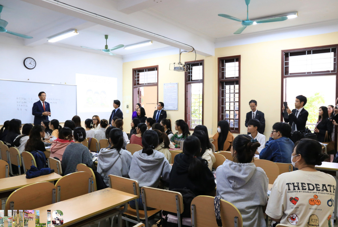 Cũng trong chuyến thăm này, đoàn đại biểu cấp cao phủ Kyoto đã đến tham quan góc văn hóa Nhật Bản và một số lớp học tiếng Nhật tại Trường Đại học Ngoại ngữ.