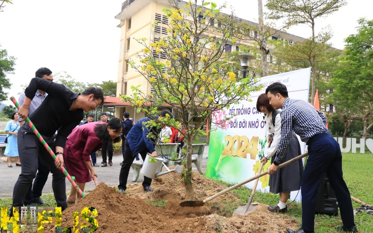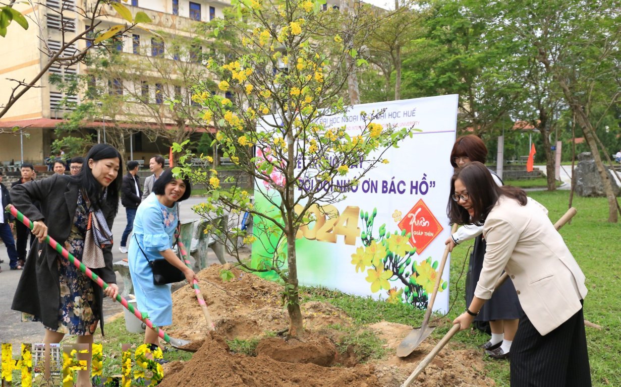 Đây là hoạt động thường niên và đã trở thành truyền thống tốt đẹp của Nhà trường mỗi độ xuân về. PGS. TS. Phạm Thị Hồng Nhung, Bí thư Đảng ủy, Hiệu trưởng Nhà trường gửi lời chúc mừng năm mới tới toàn thể VC, NLĐ và học viên sinh viên Nhà trường năm mới Giáp Thìn 2024 An Khang – Thạnh Vượng, chúc cho Trường Đại học Ngoại ngữ, Đại học Huế ngày càng phát triển. Tại buổi gặp mặt, Ban Giám hiệu cũng gửi mừng tuổi may mắn đầu năm tới từng VC, NLĐ và phát động Tết trồng cây đời đời nhớ ơn Bác Hồ./.