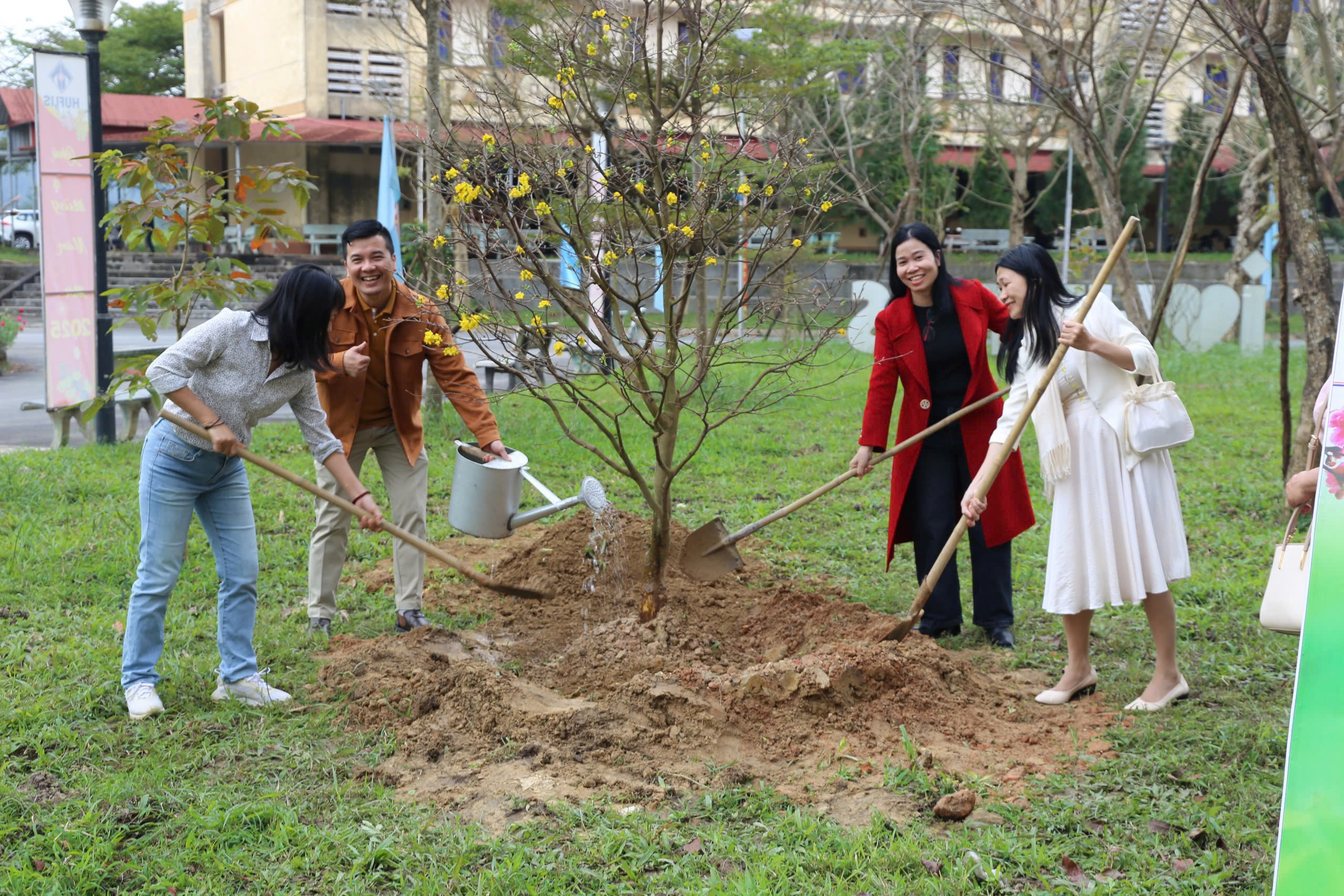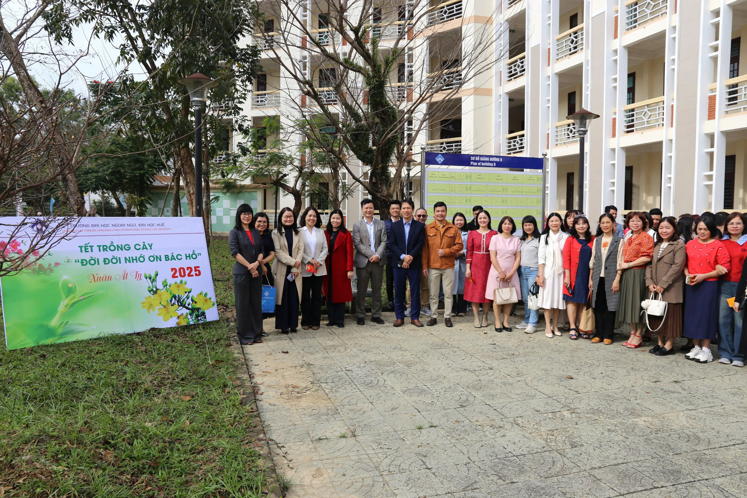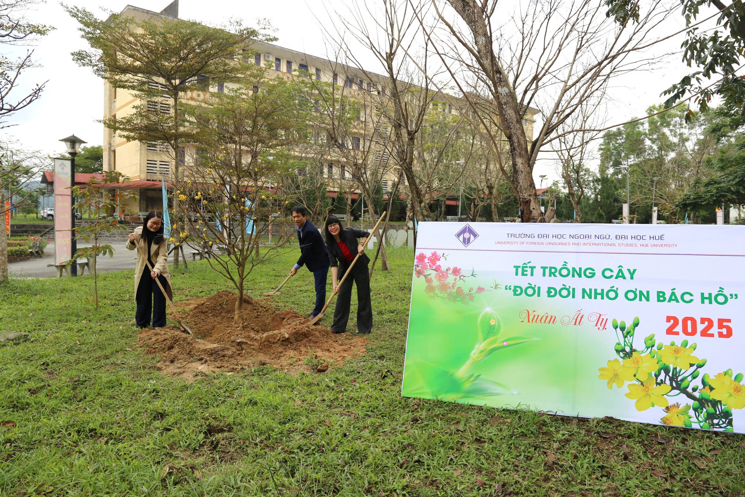 HUFLIS - Sáng ngày 03/02/2025 (mùng 6 Tết Ất Tỵ), trong không khí hân hoan những ngày đầu năm mới, Đảng Uỷ, Hội đồng trường, Ban Giám Hiệu Trường Đại học Ngoại ngữ, Đại học Huế đã tổ chức gặp mặt lãnh đạo các đơn vị và toàn thể VC, NLĐ Khối hành chính đầu năm và phát động phong trào “Tết trồng cây đời đời nhớ ơn Bác Hồ”.