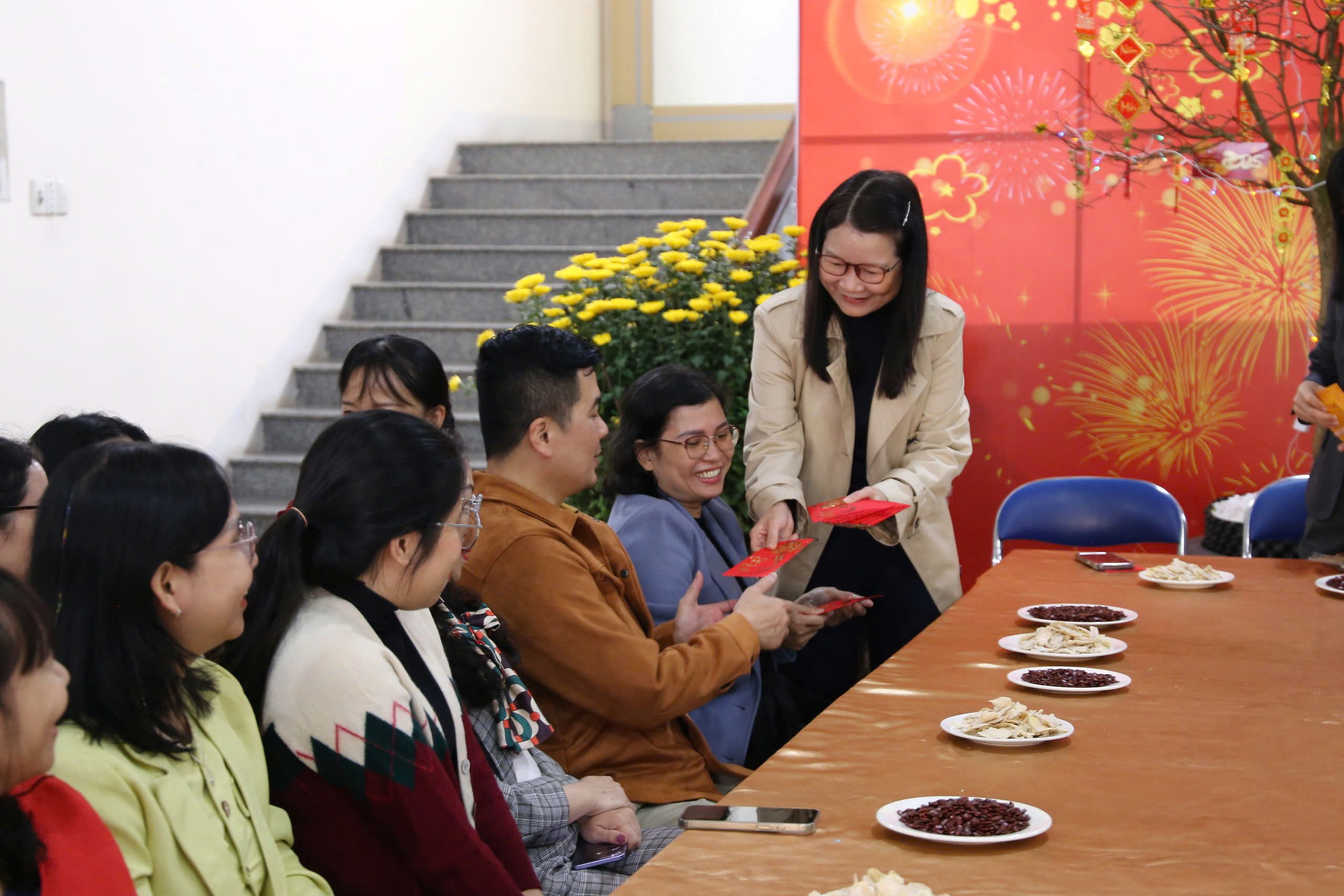 Trong buổi gặp mặt, PGS.TS. Phạm Thị Hồng Nhung – Bí thư Đảng ủy, Hiệu trưởng Nhà trường đã gửi lời chúc năm mới An khang – Thịnh vượng đến toàn thể VC, NLĐ và sinh viên, đồng thời trao lì xì may mắn đầu năm.