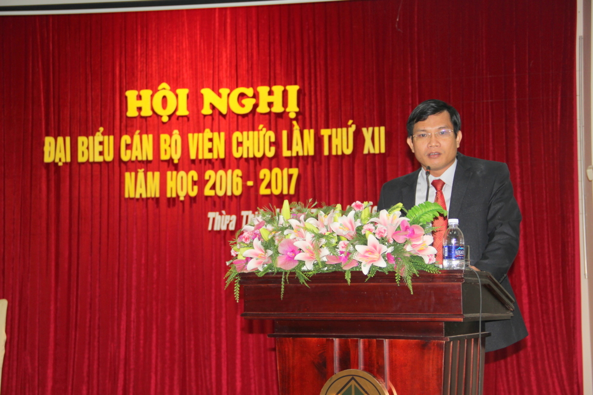 Hội nghị cán bộ viên chức là hội nghị để cán bộ viên chức phát huy quyền làm chủ của mình tham gia đóng góp ý kiến xây dựng Nhà trường trong thời gian tới. Dự Hội nghị có PGS. TS Nguyễn Duân – Chủ tịch Công đoàn Đại học Huế; TS Bảo Khâm – Bí thư Đảng ủy, Hiệu trưởng; ThS Phan Thanh Tiến – Chủ tịch Công đoàn Trường và 154 đại biểu đại diện cho các đơn vị của Trường.