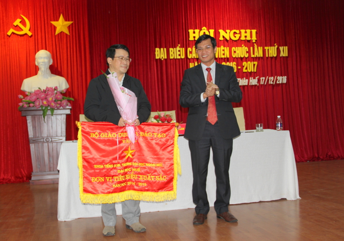 Trao cờ Tập thể lao động xuất sắc của Bộ Giáo dục và Đào tạo cho tập thể Khoa tiếng Anh.