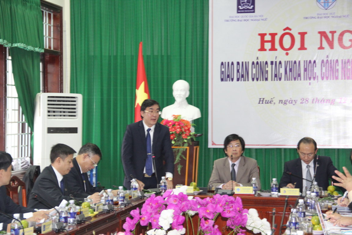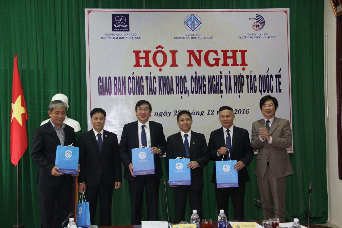 Ngày 28/12/2016, Hiệu trưởng ba trường Đại học Ngoại ngữ - Đại học Quốc gia Hà Nội (ĐHNN-ĐHQGHN); trường Đại học Ngoại ngữ - Đại học Đà Nẵng (ĐHNN-ĐHĐN) và trường Đại học Ngoại ngữ- Đại học Huế (ĐHNN-ĐHH) đã chủ trì Hội nghị giao ban công tác KHCN&HTQT giữa ba đơn vị tại Trường Đại học Ngoại ngữ, Đại học Huế.