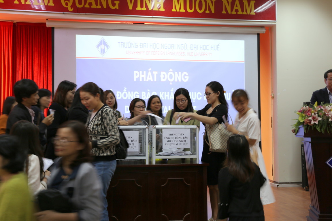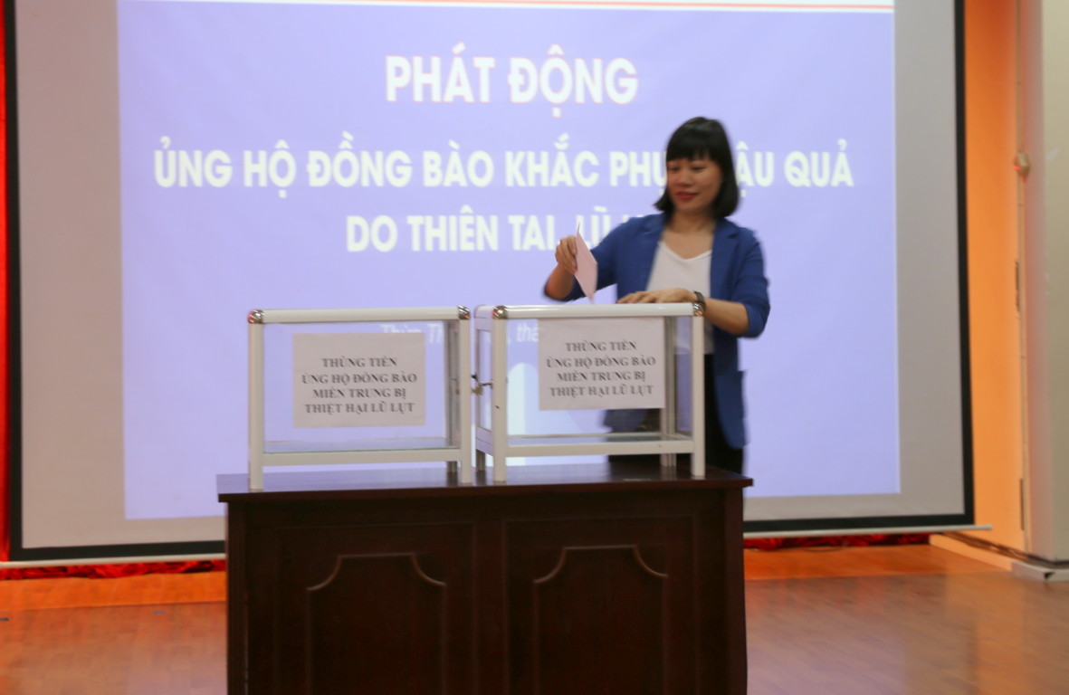 Với tinh thần đoàn kết, tương thân tương ái, lá lành đùm lá rách và Hưởng ứng lời kêu gọi của Thủ tướng Chính phủ, Đoàn Chủ tịch Ủy ban Trung ương MTTQ Việt Nam và Trung ương Hội Chữ thập đỏ Việt Nam, tại Hội nghị thay mặt cho Công đoàn cơ sở Trường, ThS Phan Thanh Tiến, Chủ tịch đã phát động đợt quyên góp ủng hộ đồng bào bị lũ lụt nhằm góp phần chia sẻ, hỗ trợ đồng bào sớm khắc phục hậu quả thiên tai, ổn định cuộc sống. Ngay trong buổi phát động đã quyên góp đã nhận được với số tiền trên 20 triệu đồng, Công đoàn Trường vẫn tiếp tục nhận quyên góp từ các đơn vị, VC, LĐ và các nhà hảo tâm. Những hành động thiết thực sẽ góp phần giúp đỡ đồng bào các vùng bị thiệt hại, trong đó có các thầy cô giáo và các em sinh viên sớm khắc phục hậu quả, ổn định cuộc sống.