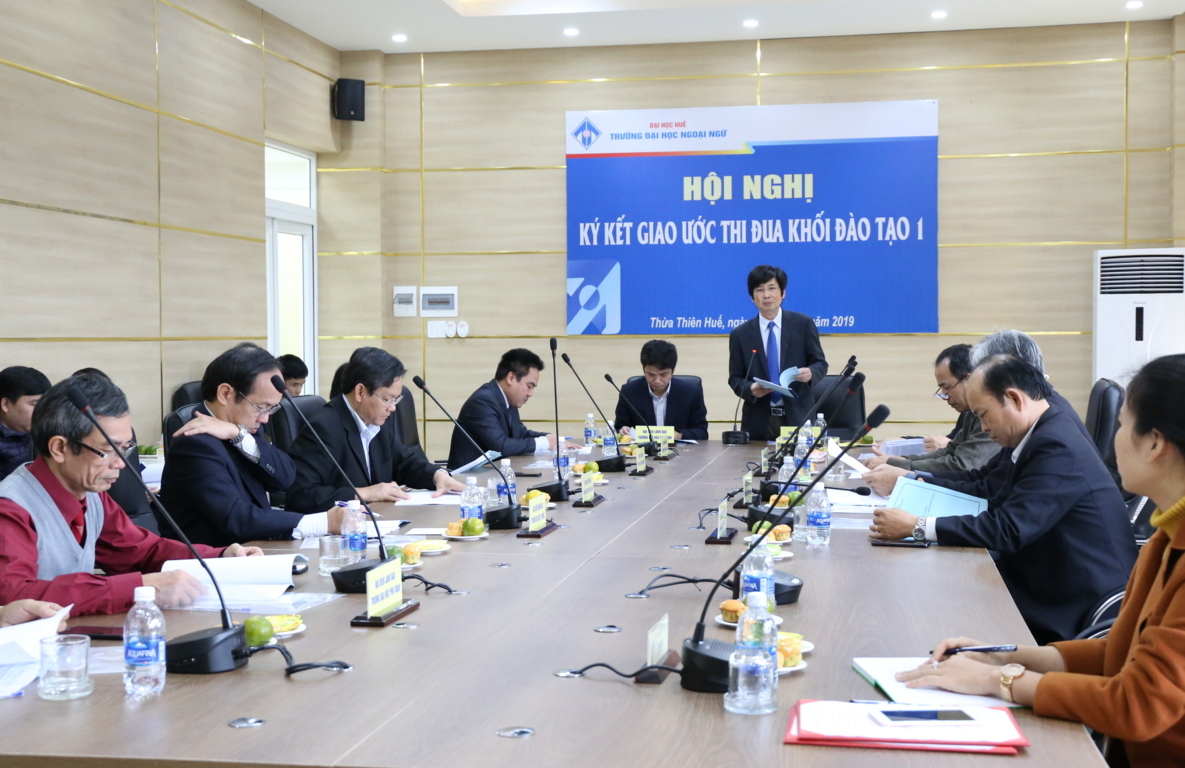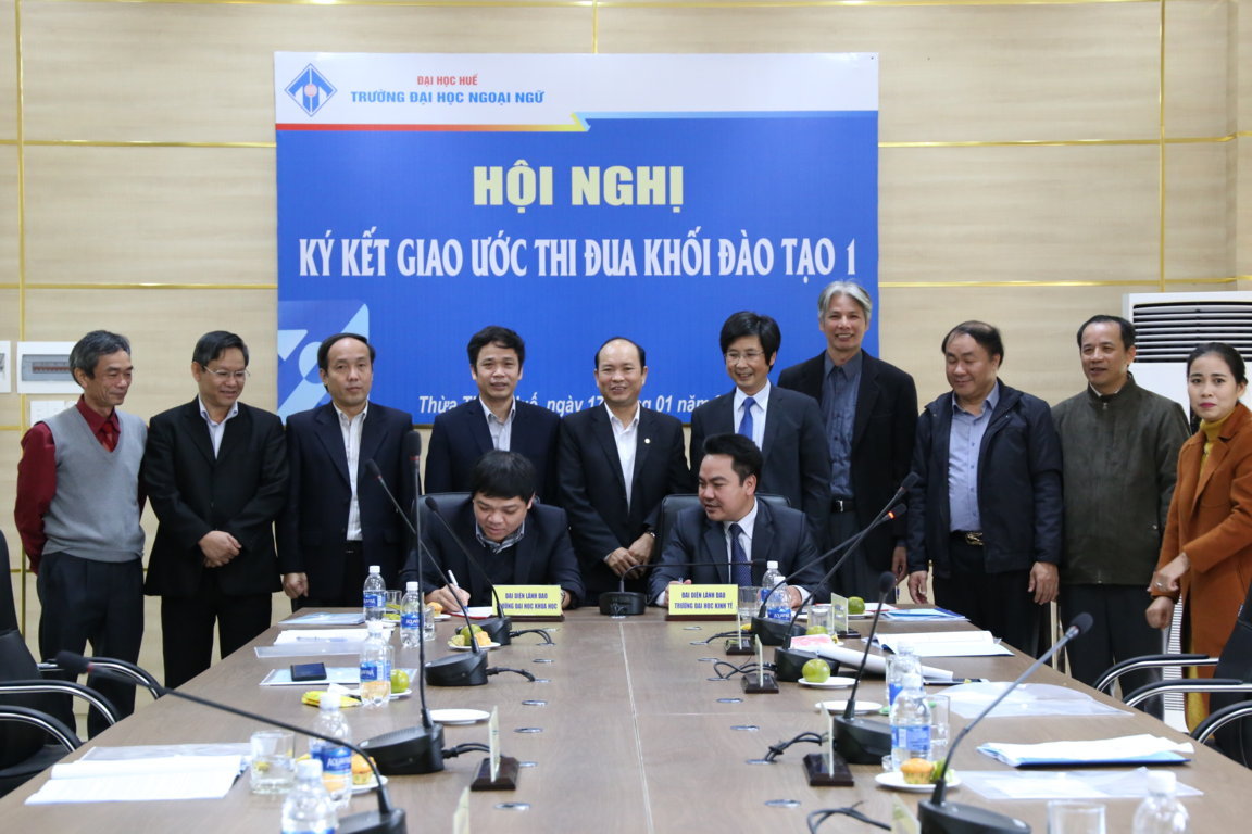 Sáng ngày 1701/2019, tại Trường Đại học Ngoại ngữ, Đại học Huế; Khối thi đua đào tạo 1 tổ chức Hội nghị ký kết giao ước thi đua năm 2019. Dự Hội nghị có Ông Trần Văn Đức, chuyên viên nghiệp vụ, Ban Thi đua khen thưởng tỉnh TT Huế; TS. Bảo Khâm, Bí thư Đảng ủy, Hiệu trưởng Trường Đại học Ngoại ngữ, Trưởng Khối thi đua Đào tạo 1; đại diện lãnh đạo 8 trường đại học thành viên Đại học Huế và Đại diện lãnh đạo Trường Đại học Phú Xuân, Học viện Âm nhạc Huế cùng các chuyên viên phụ trách công tác thi đua của các đơn vị.