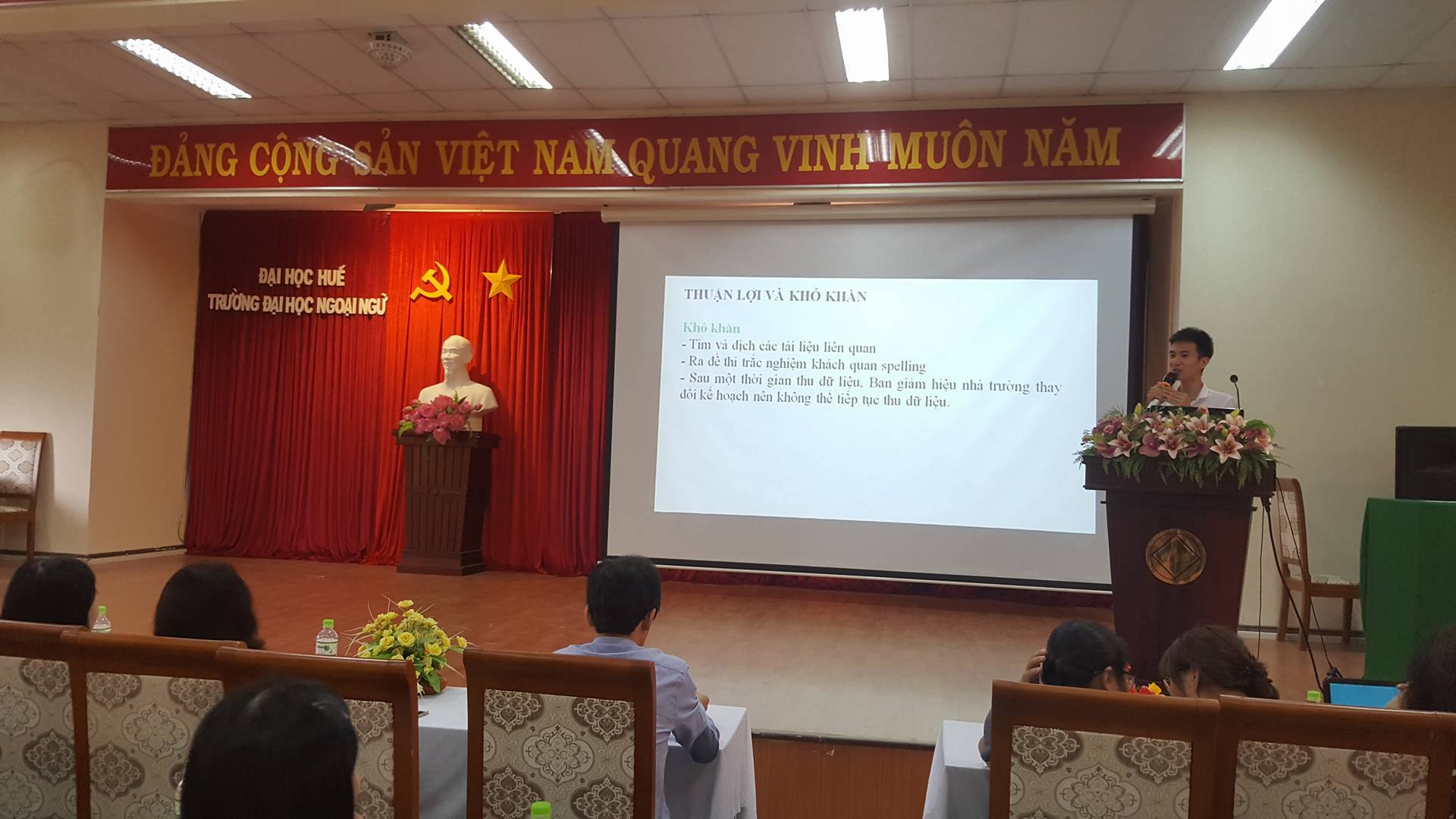 Vào sáng 21/10/2017, Trường Đại học Ngoại ngữ, Đại học Huế đã tổ chức thành công Hội thảo chuyên đề Triển khai Nghiên cứu Khoa học năm 2017. Hội thảo bao gồm 8 báo cáo của sinh viên và một báo cáo Hướng dẫn làm Báo cáo tổng kết đề tài từ Phòng Khoa học, Công nghệ & Hợp tác Quốc tế.