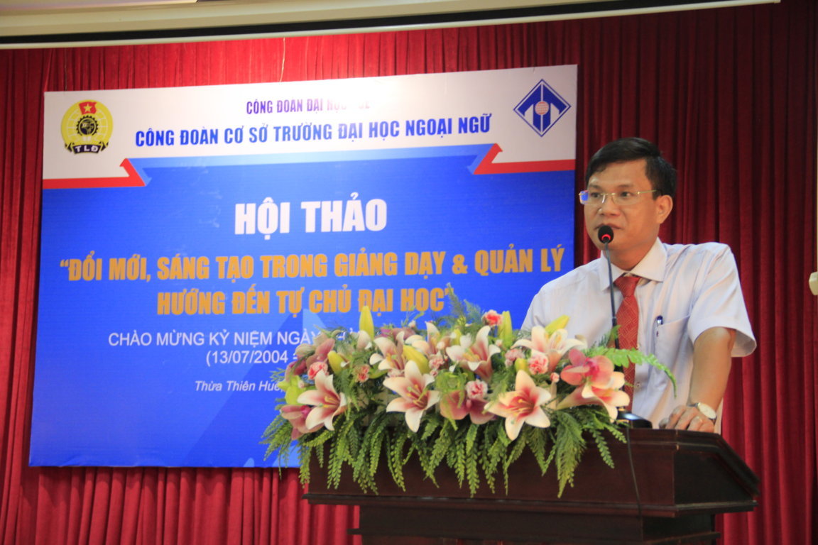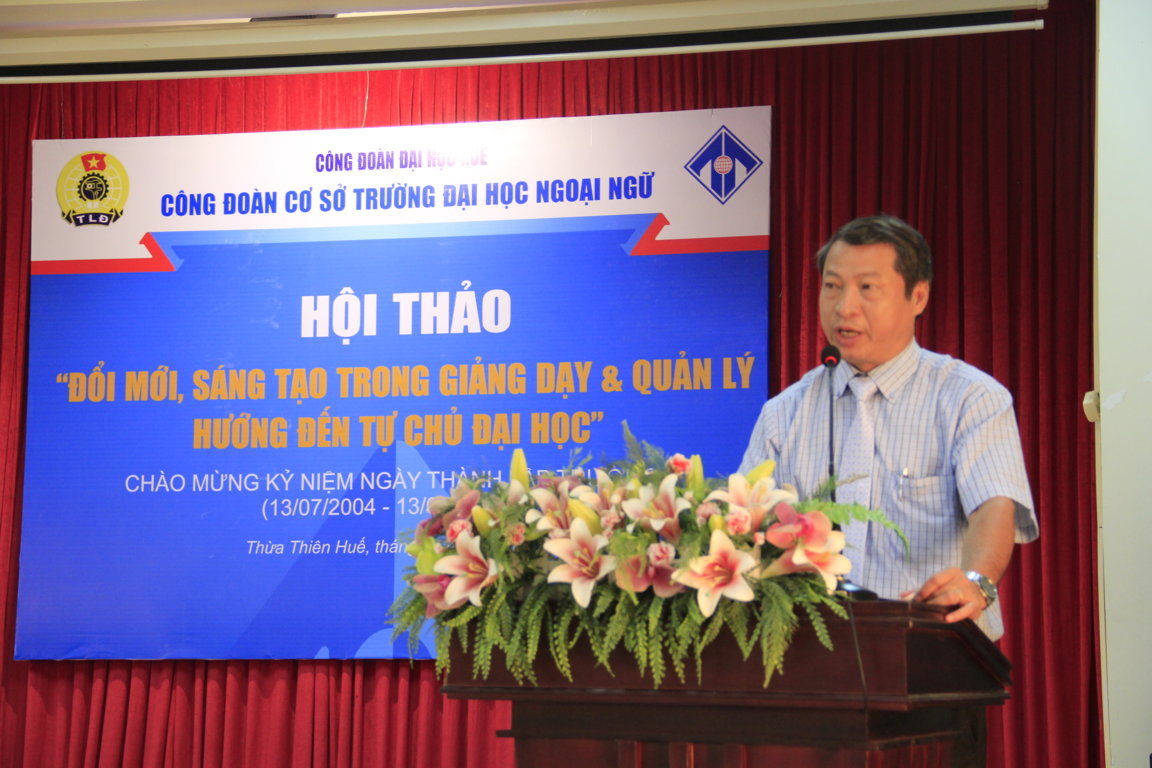 PGS.TS Nguyễn Duân Chủ tịch Công đoàn Đại học Huế phát biểu tại hội thảo