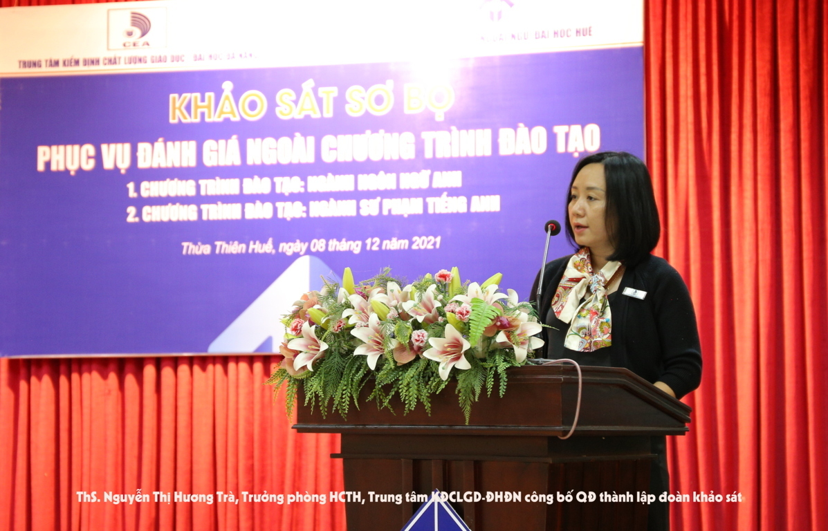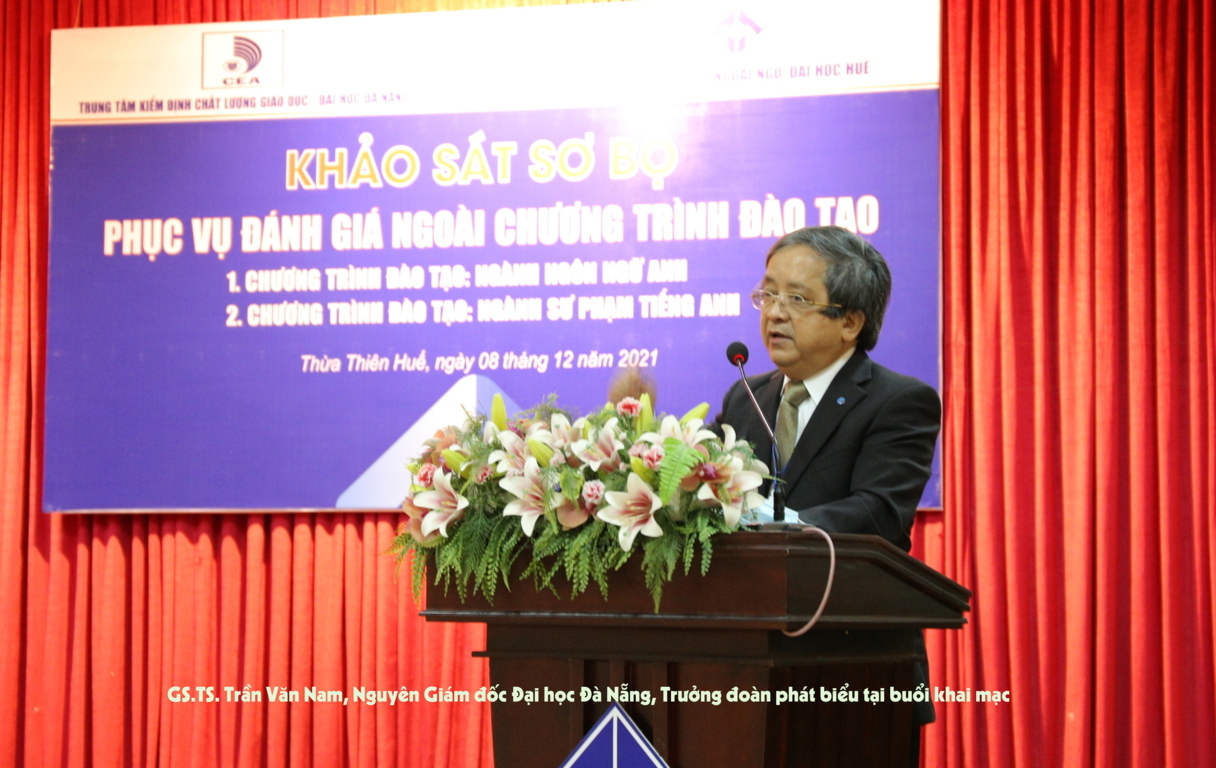Ngày 08/12/2021, Trường Đại học Ngoại ngữ, Đại học Huế phối hợp với Trung tâm Kiểm định chất lượng giáo dục - Đại học Đà Nẵng tổ chức Khảo sát sơ bộ phục vụ công tác Đánh giá ngoài Chương trình đào tạo các ngành Ngôn ngữ Anh và Sư phạm tiếng Anh.