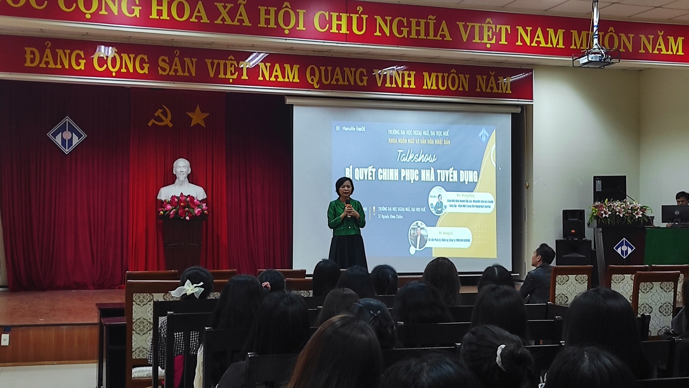 Nhằm tạo điều kiện cho sinh viên có cơ hội đến gần hơn với doanh nghiệp, công ty mà các bạn mong muốn, đồng thời chuẩn bị những hành trang cần thiết cho tương lai, sáng ngày 09/4/2023, được sự đồng ý của nhà trường Khoa Ngôn ngữ và Văn hóa Nhật Bản – Trường Đại học Ngoại ngữ, Đại học Huế đã tổ chức Talkshow với chủ đề "BÍ QUYẾT CHINH PHỤC NHÀ TUYỂN DỤNG".