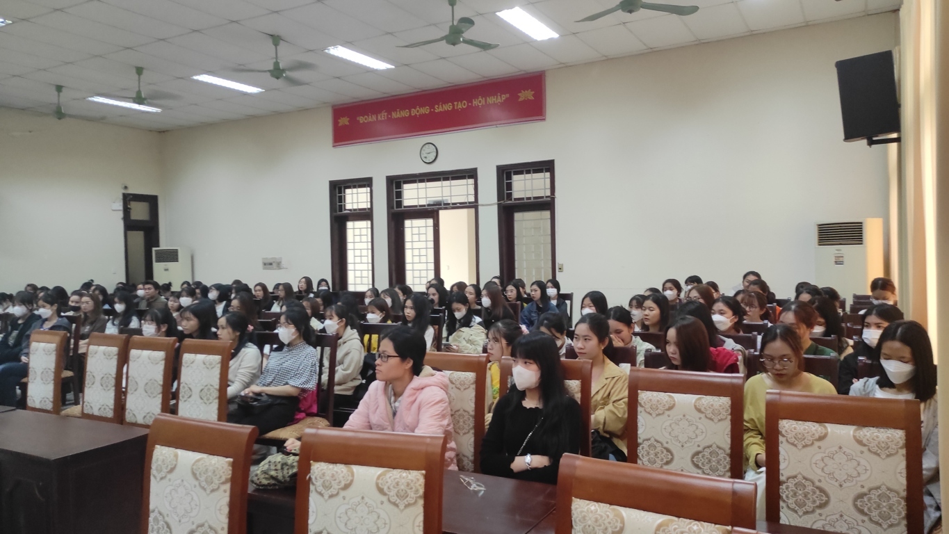 (Chị Đặng Thị Tuyết Nhung chia sẻ nhiều thức bổ ích cho các bạn sinh viên)