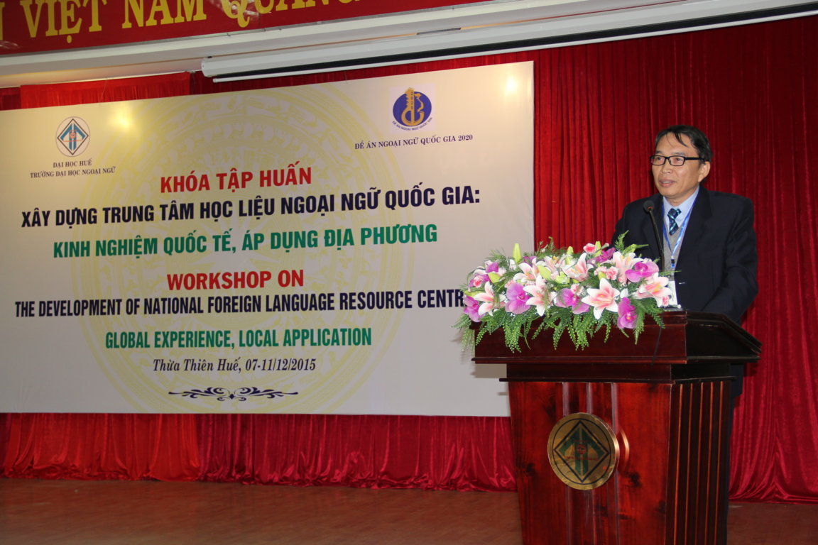 Xây dựng Trung tâm học liệu Ngoại ngữ Quốc gia: Kinh nghiệm Quốc tế áp dụng địa phương. Đó là chủ đề của Khóa tập huấn nghiệp vụ xây dựng trung tâm học liệu ngoại ngữ Quốc gia do Trường Đại học Ngoại ngữ, Đại học Huế tổ chức được khai mạc sáng nay (07/12).