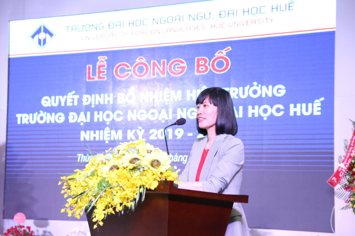 Phát biểu tại buổi lễ, tân Hiệu trưởng PGS. TS. Phạm Thị Hồng Nhung đã bày tỏ lời cảm ơn Thường vụ Đảng ủy, Ban giám đốc Đại học Huế cùng tập thể cán bộ, giảng viên Nhà trường đã tín nhiệm, bổ nhiệm mình giữ trọng trách Hiệu trưởng Trường Đại học Ngoại ngữ. Đồng thời khẳng định: Đây là niềm vinh dự và trách nhiệm lớn lao và sẽ làm việc hết mình vì sự phát triển của Nhà trường, sự tiến bộ của người học và sự phát triển của ngành giáo dục trong công cuộc đổi mới hiện nay.