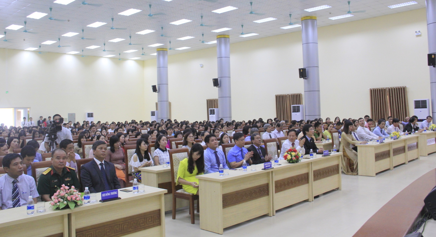 Đọc diễn văn khai giảng TS. Bảo Khâm, Hiệu trưởng Nhà trường đã nêu bật những kết quả đạt được năm học 2017 – 2018, trong năm học qua, Nhà trường đã triển khai đồng bộ các giải pháp để tiếp tục đổi mới công tác quản lý, đổi mới phương pháp dạy học, đổi mới và nâng cao chất lượng bằng việc ứng dụng triệt để công nghệ thông tin trong giảng dạy và kiểm tra đánh giá năng lực sinh viên, đổi mới chương trình đào tạo, xây dựng nề nếp giảng dạy và sinh hoạt học thuật, tăng cường ứng dụng công nghệ thông tin trong dạy và học, khuyến khích việc triển khai các hình thức học kết hợp trực tiếp và trực tuyến…