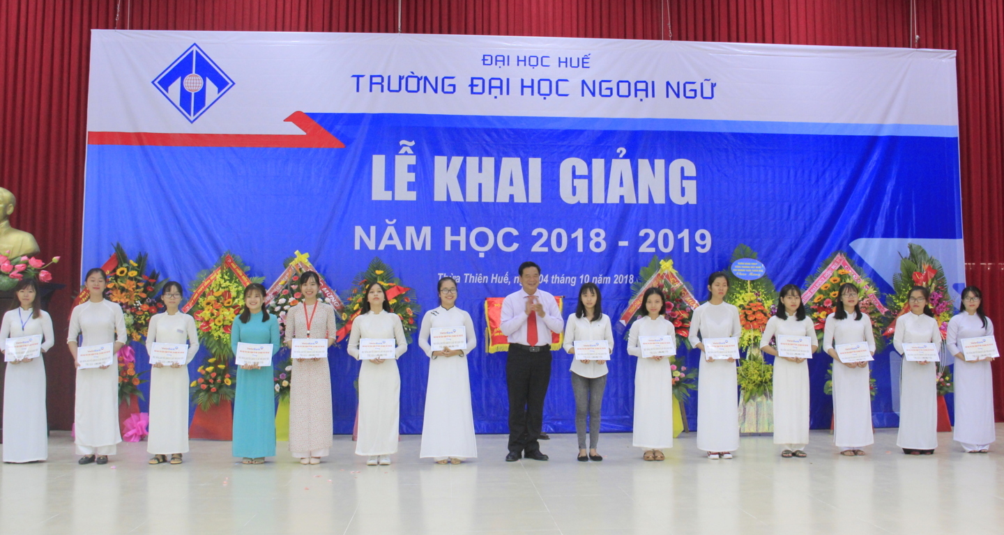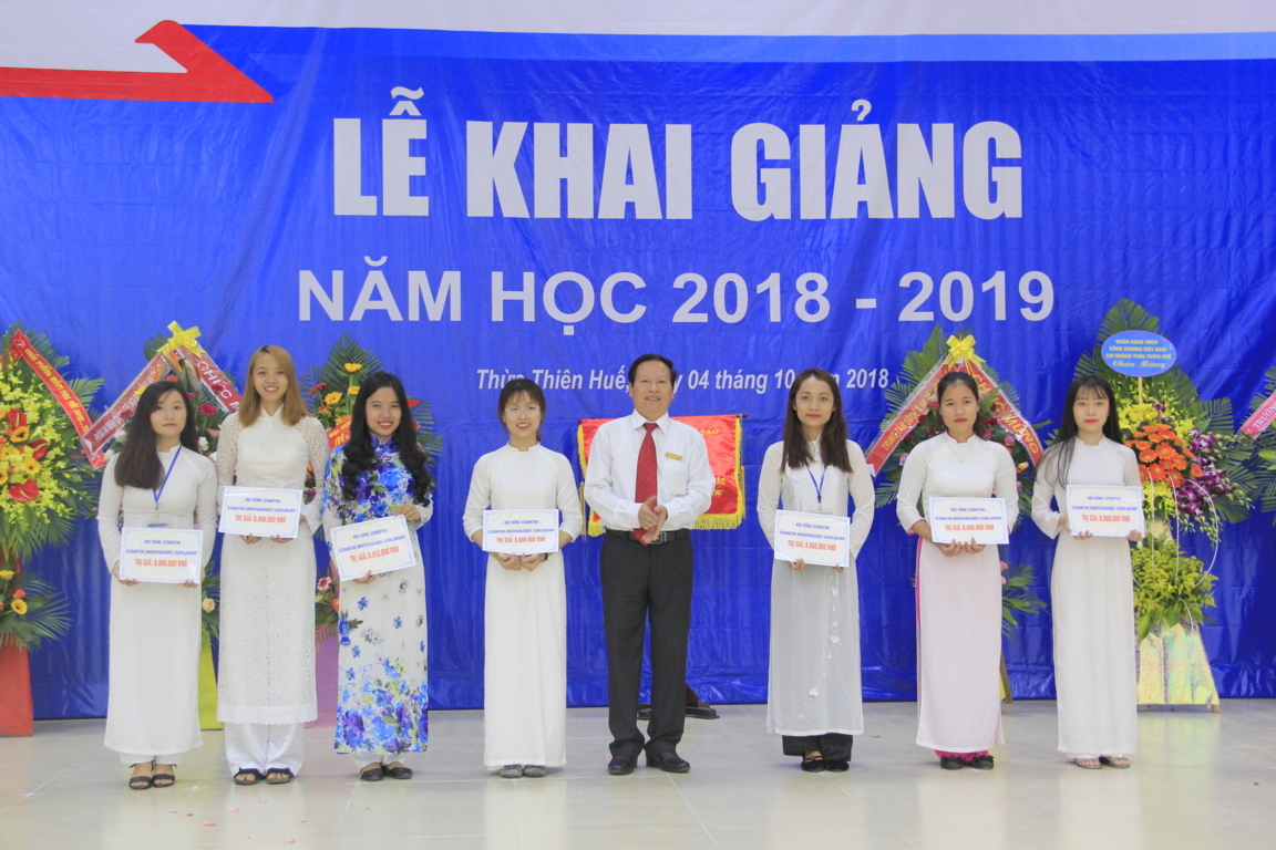 Tại lễ Khai giảng, Nhà trường trao đã tặng giấy khen và phần thưởng cho sinh viên đạt điểm Thủ khoa của Trường và Thủ khoa ngành trong kỳ thi PTTH Quốc gia vừa qua, danh hiệu sinh viên xuất sắc năm học 2017 – 2018 và trao 60 suất học bổng khuyến học trị giá 60 triệu đồng cho các sinh viên có hoàn cảnh khó khăn.