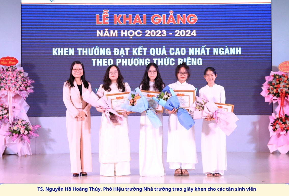 PGS. TS. Phạm Thị Hồng Nhung, Hiệu trưởng Nhà trường đã phát biểu chúc mừng và chào đón các tân sinh viên.