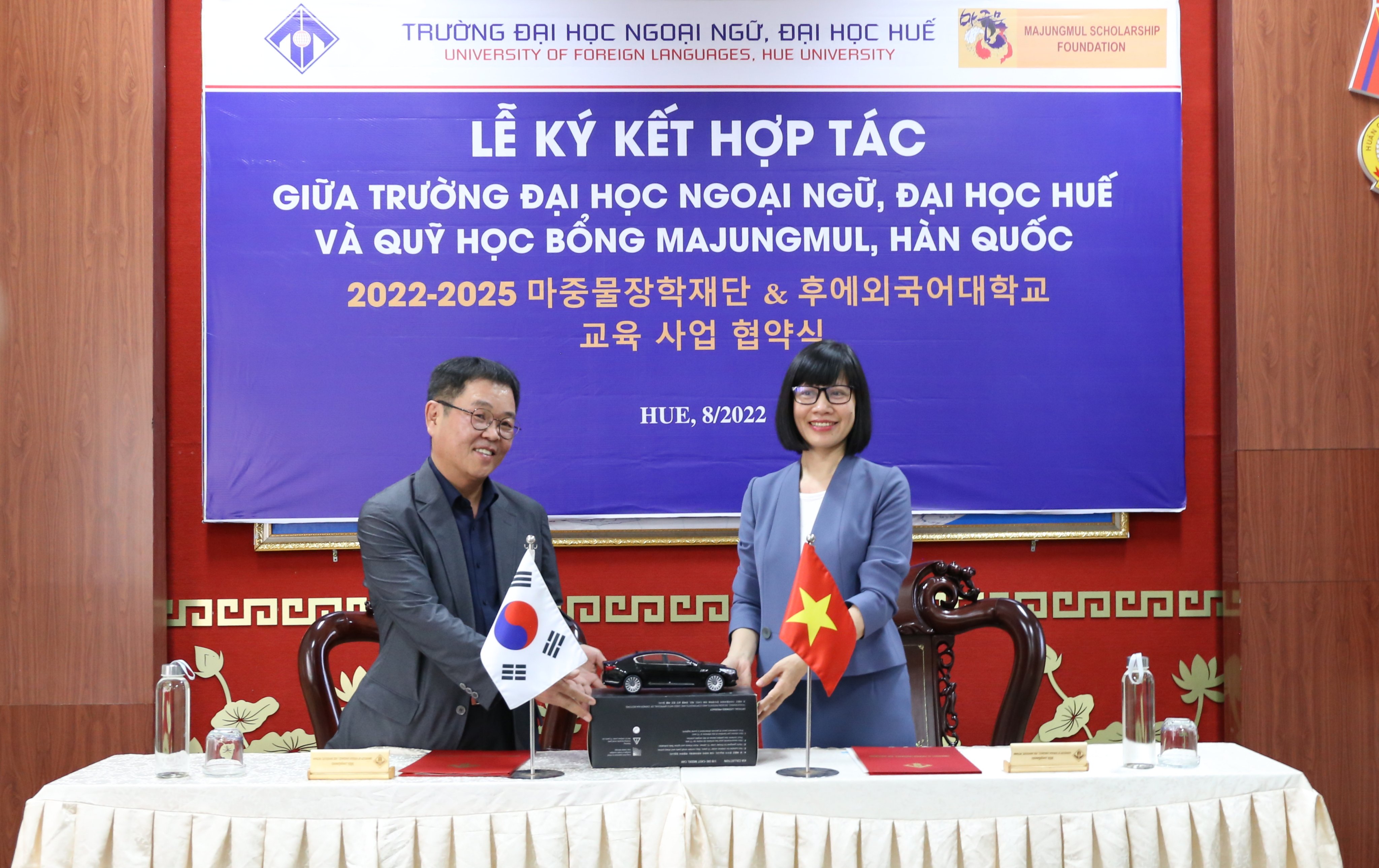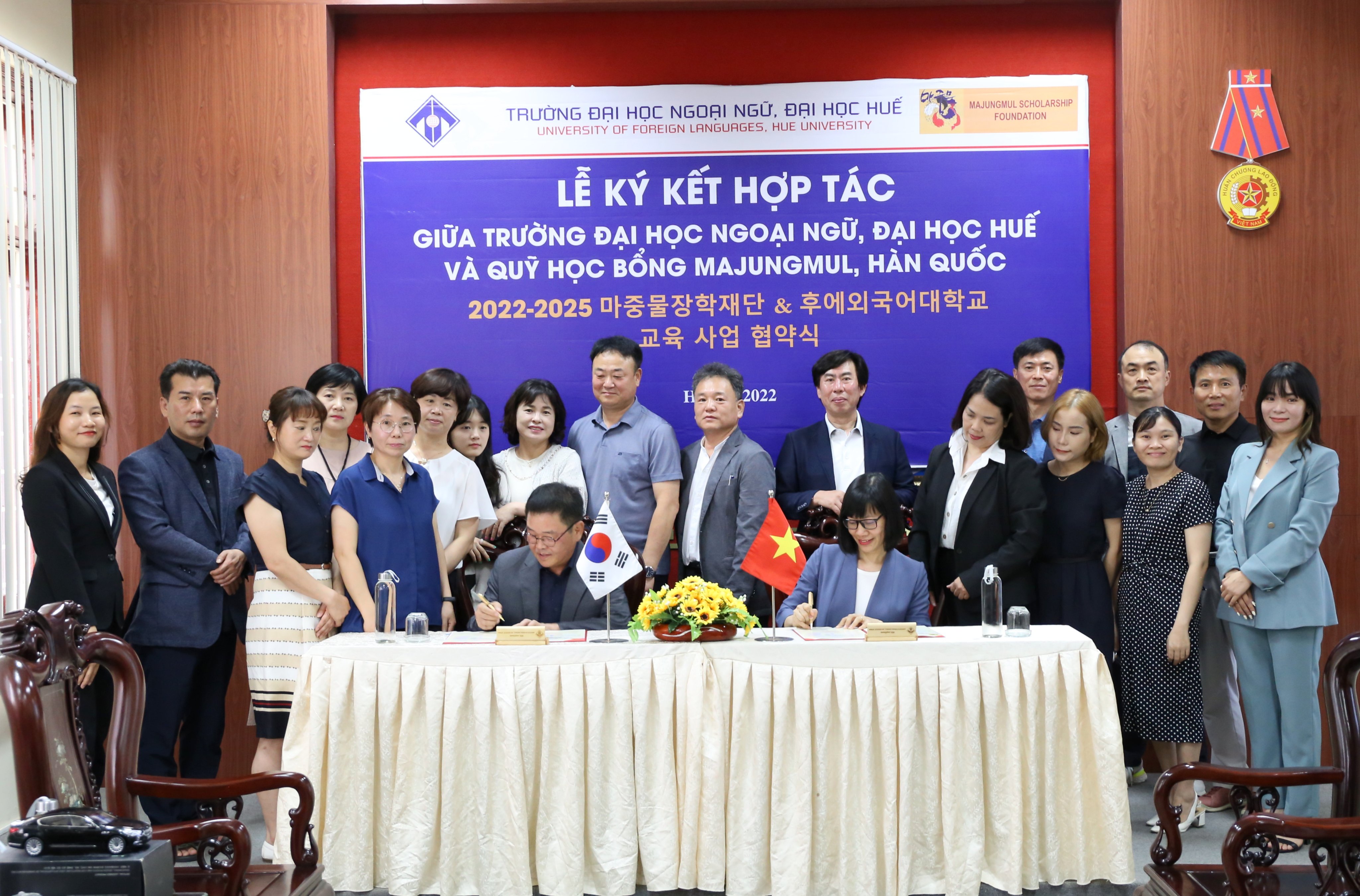 Trường Đại học Ngoại ngữ, Đại học Huế và Quỹ Học bổng Majungmul đã ký kết hợp tác giai đoạn 1 (2018-2021) và trong 04 năm qua, Quỹ đã hỗ trợ học bổng cho 52 sinh viên khoa Ngôn ngữ & Văn hóa Hàn Quốc của Trường có hoàn cảnh khó khăn để tiếp tục học tập