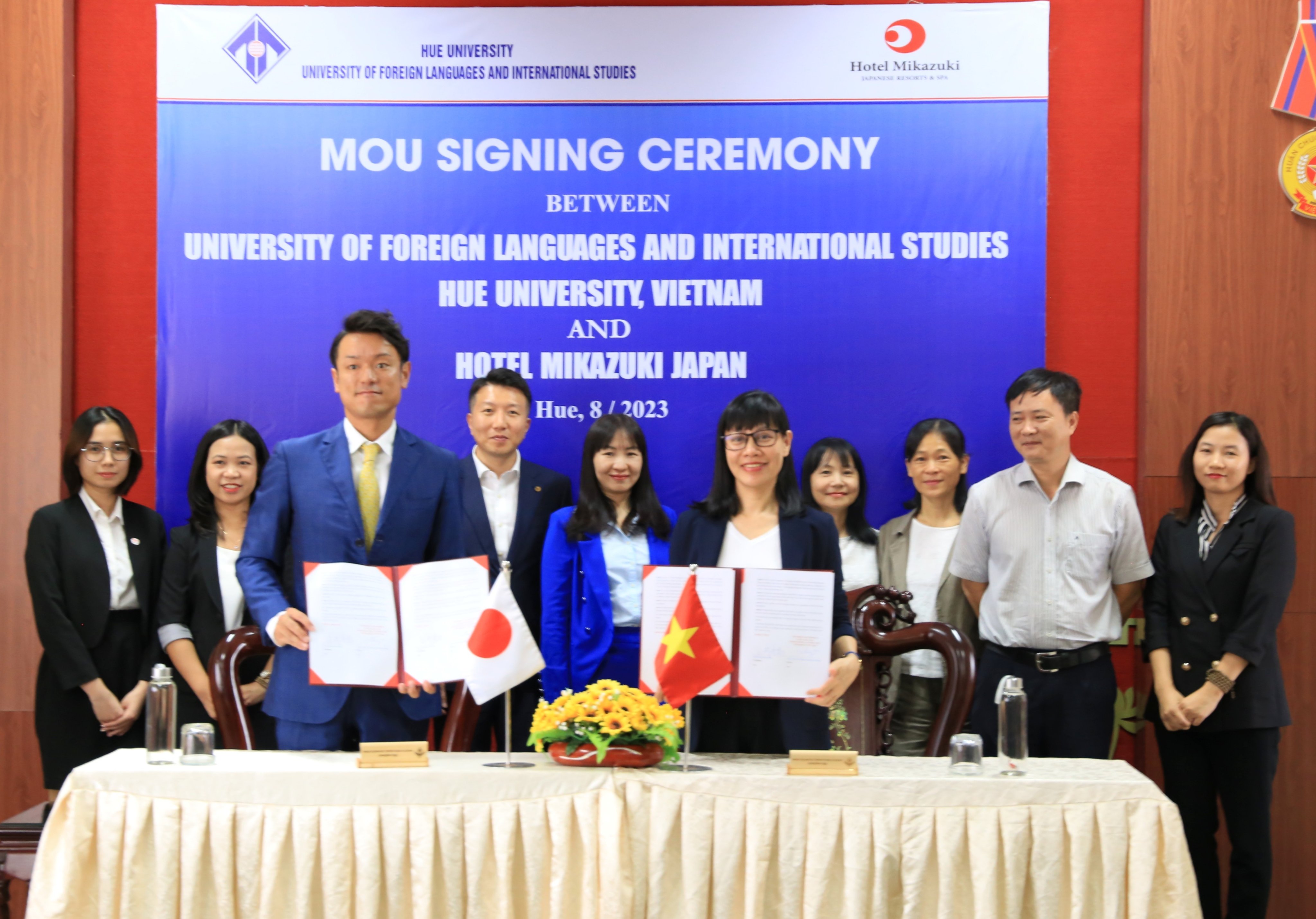 Lễ ký kết hợp tác giữa Trường Đại học Ngoại ngữ, Đại học Huế với Tập đoàn Mikazuki Nhật Bản. 21-08-2023