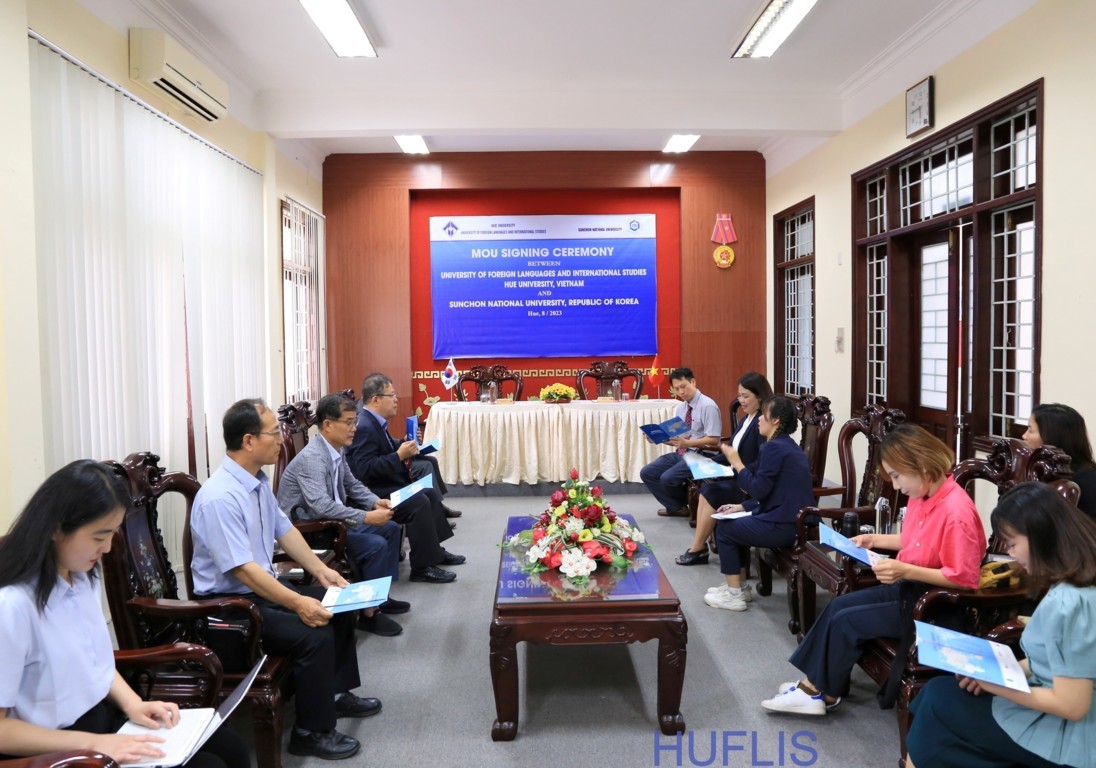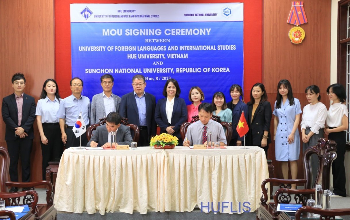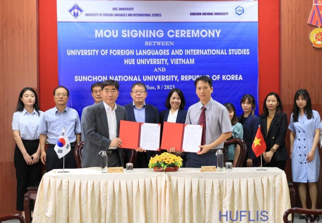 HUFLIS- Sáng ngày 01/8/2023, Trường Đại học Ngoại ngữ, Đại học Huế đã tổ chức lễ ký Thỏa thuận hợp tác với Trường Đại học Quốc gia Sunchon, Hàn Quốc. Đại diện phía Đại học Quốc gia Sunchon tham gia buổi lễ ký kết là ông Lee Byungwoon, Hiệu trưởng và phía Trường Đại học Ngoại ngữ, Đại học Huế là TS. Nguyễn Văn Huy, Phó hiệu trưởng Nhà trường.
