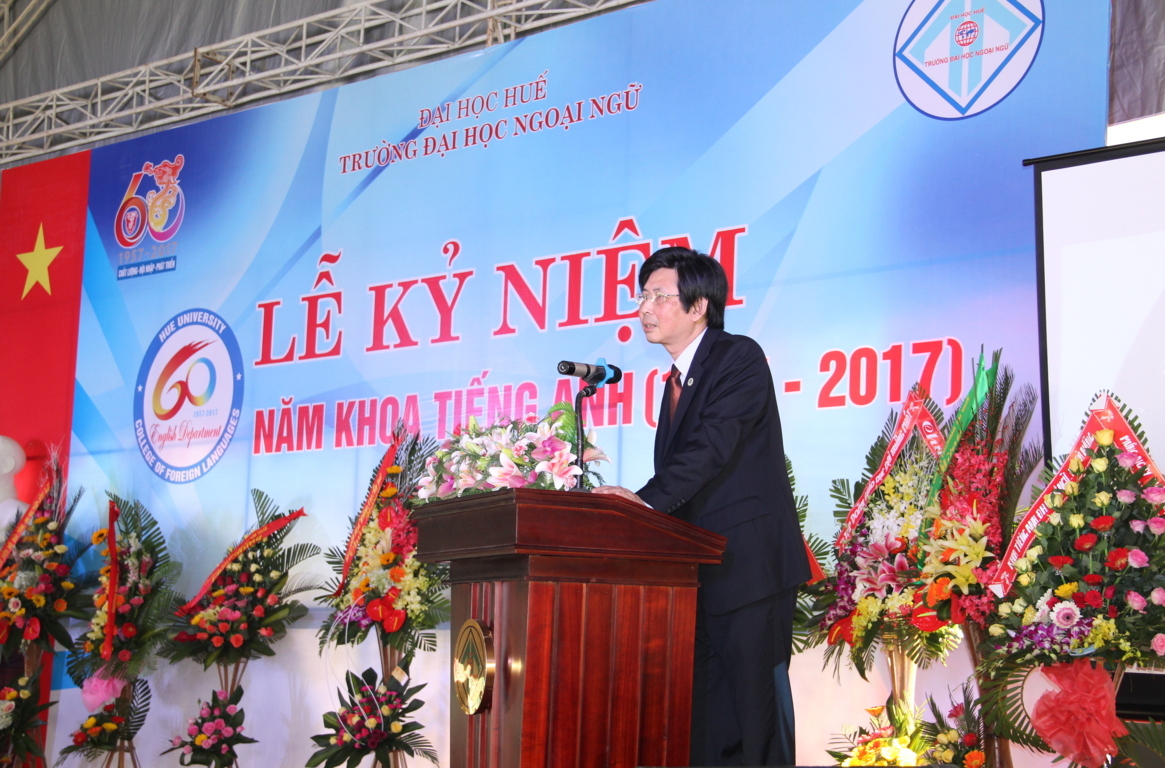 Trong bài diễn văn khai mạc buổi lễ, TS Trương Bạch Lê đã điểm lại quá trình hình thành và phát triển 60 năm qua của Khoa tiếng Anh, Trường Đại học Ngoại ngữ, Đại học Huế. Khoa tiếng Anh, Trường ĐHNN, ĐHH tiền thân từ Ban Văn Khoa và Ban Sư Phạm của Viện ĐHH (1957). Trong 60 năm hình thành và phát triển, Khoa đã trải qua các thời kỳ để phù hợp chung với mô hình hình phát triển của ĐHH nói riêng và lịch sử đất nước nói chung. Đến nay, Khoa đã có hàng chục CBGV được phong hàm GS, PGS...Các sinh viên tốt nghiệp từ khoa tiếng Anh ra trường có mặt tại rất nhiều lĩnh vực công tác khác nhau như: làm quản lý, làm du lịch, ngoại giao, giảng dạy... trên khắp mọi miền tổ quốc. Chính các thế hệ sinh viên ấy làm nên thương hiệu Khoa tiếng Anh Trường Đại học Ngoại ngữ - Đại học Huế.