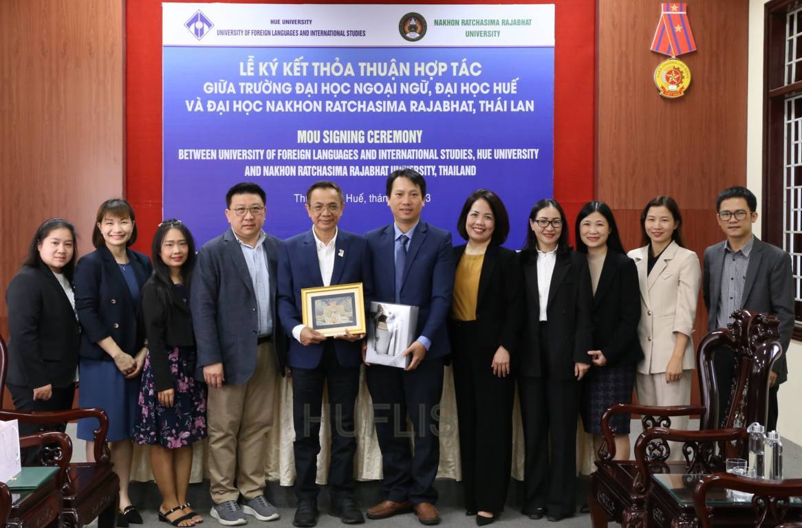 HUFLIS- Ngày 24/2/2023, Trường Đại học Ngoại ngữ, Đại học Huế đã tổ chức ký biên bản thỏa thuận hợp tác với Trường Đại học Nakhon Ratchasima Rajabhat, Thái Lan (NRRU). PGS.TS. Adisorn Naowanondha, Hiệu trưởng Trường Nakhon Ratchasima Rajabhat, và TS. Nguyễn Văn Huy, Phó Hiệu trưởng Trường Đại học Ngoại ngữ, Đại học Huế (HUFLIS) đại diện hai đơn vị tham gia buổi lễ ký kết.