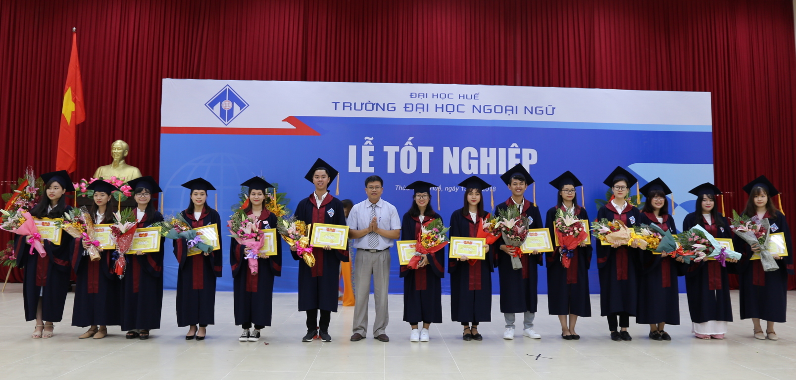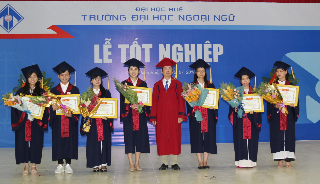 Buổi lễ diễn ra trong không khí trang trọng và phấn khởi của các tân cử nhân và quý phụ huynh, tại buổi lễ Nhà trường đã khen thưởng cho 01 sinh viên thủ khoa tốt nghiệp của Trường và 09 thủ khoa của các ngành đào tạo, 16 sinh viên đạt kết quả học tập xuất sắc và 191 sinh viên đạt loại giỏi và 16 sinh viên được Giám đốc Đại học Huế tặng giấy khen.