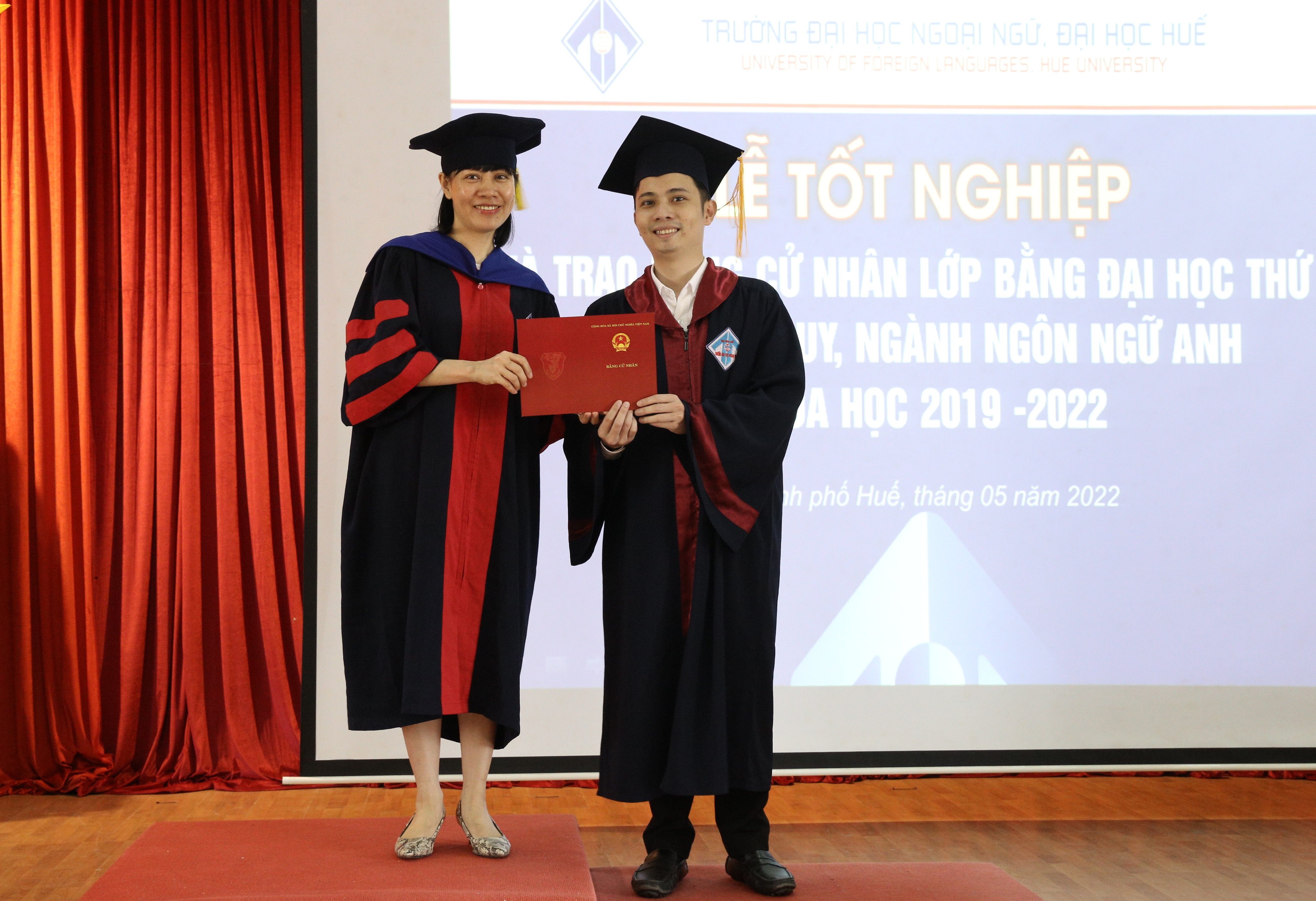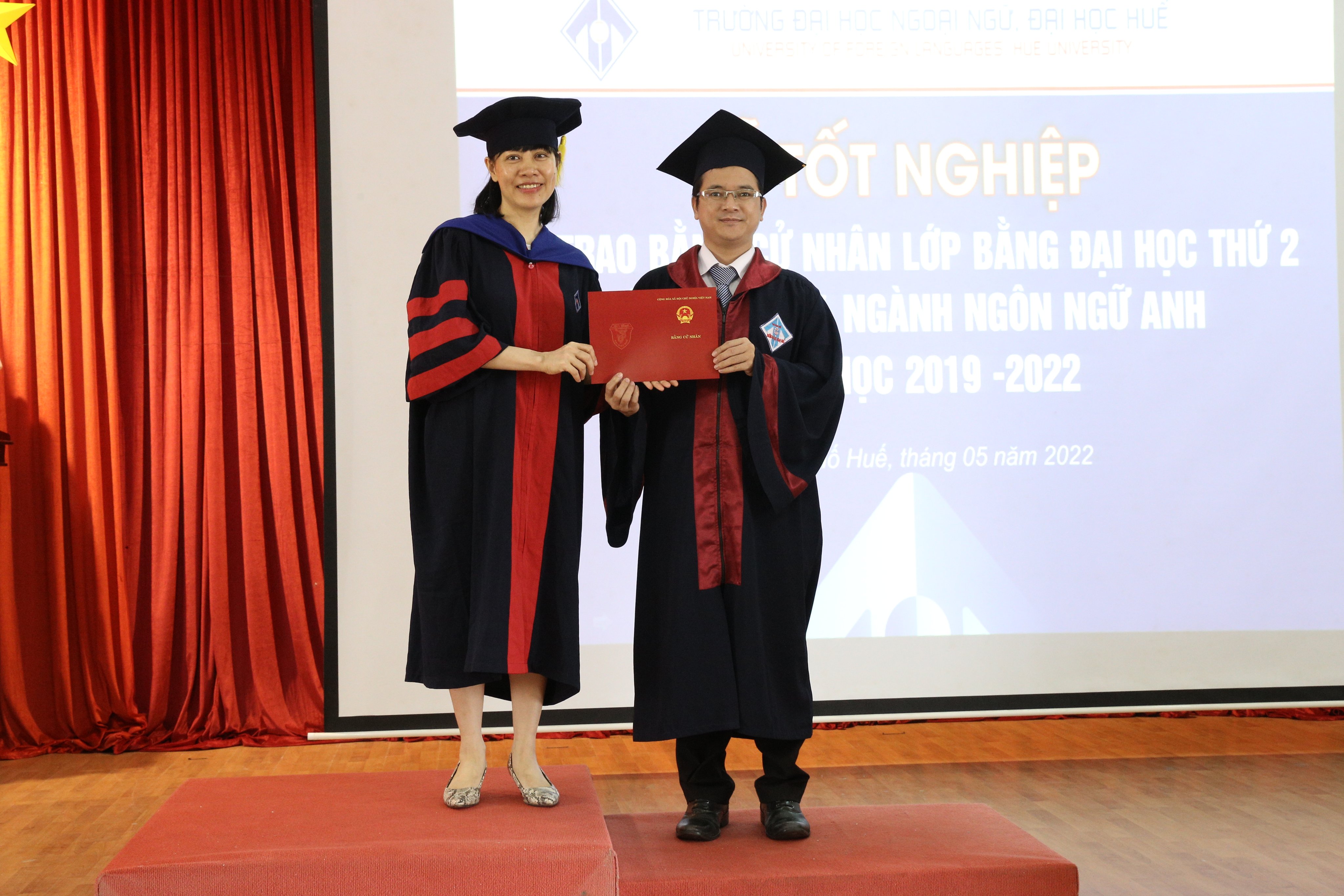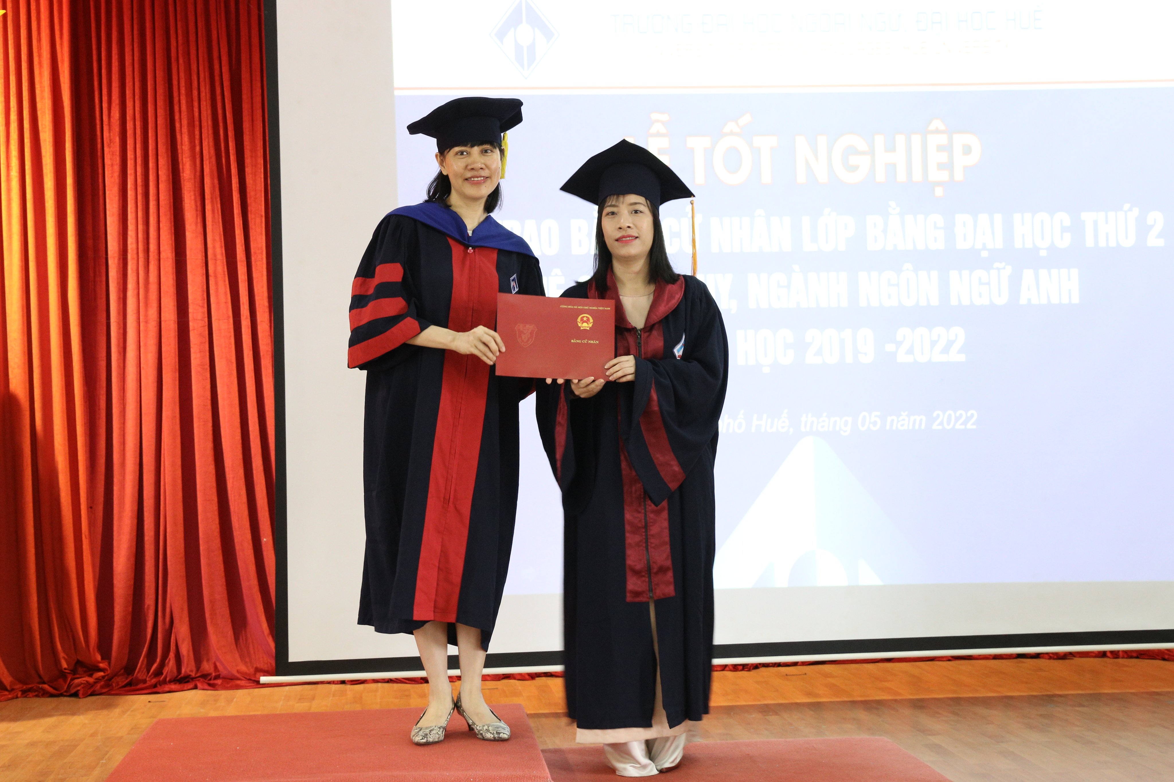 Ngày (09/05) Trường Đại học Ngoại ngữ, Đại học Huế tổ chức buổi lễ Tốt nghiệp và trao bằng cử nhân lớp bằng đại học thứ 2, hệ chính quy ngành ngôn ngữ Anh, khóa học 2019 – 2022 cho 80 tân cử nhân các lớp Anh B2K15 C và D.