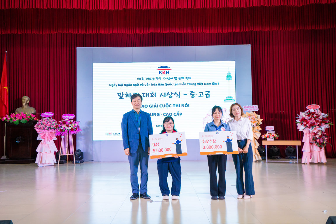 Ông Choi Jaeji, giám đốc KF tại Việt Nam trao giải cuộc thi Nói tiếng Hàn cho thí sinh