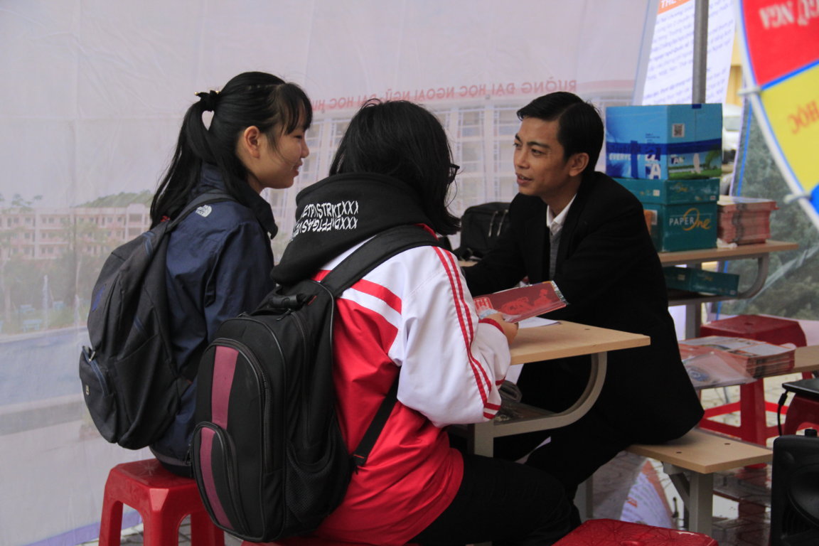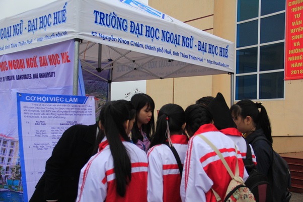 Đoàn Tư vấn tuyển sinh 2018 của trường Đại học Ngoại ngữ, Đại học Huế nhận được rất nhiều sự quan tâm và đã giải đáp những thắc mắc, băn khoăn từ các bậc phụ huynh, các bạn học sinh như: Chính sách ưu đãi miễn giảm 50% học phí, học bổng du học toàn phần 5 năm tại Liên bang Nga đối với ngành Ngôn ngữ Nga; học bổng trong nước và học bổng du học ở các nước Đông Nam Á, Châu Âu, Hoa Kỳ đối với ngành Ngôn ngữ Anh; Cơ hội tìm kiếm việc làm sau khi tốt nghiệp đối với các ngành Ngôn ngữ Hàn Quốc, Trung Quốc, Nhật Bản, môi trường học tập, sinh hoạt của sinh viên tại trường Đại học Ngoại ngữ,...