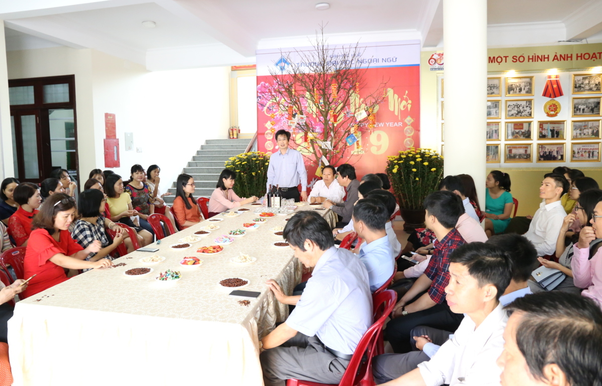 Trước đó, hòa chung không khí đón xuân của cả nước, sáng ngày 11/02/2019 (tức Mùng 7 Tết), Trường Đại học Ngoại ngữ đã tổ chức Buổi gặp gỡ đầu Xuân Kỷ Hợi, đây là hoạt động thường niên và đã trở thành truyền thống tốt đẹp của Nhà trường mỗi độ xuân về, Hiệu trưởng Bảo Khâm gửi lời cảm ơn tới toàn thể cán bộ, viên chức và người lao động đã nỗ lực cố gắng, đóng góp cho sự phát triển Nhà trường trong năm qua.