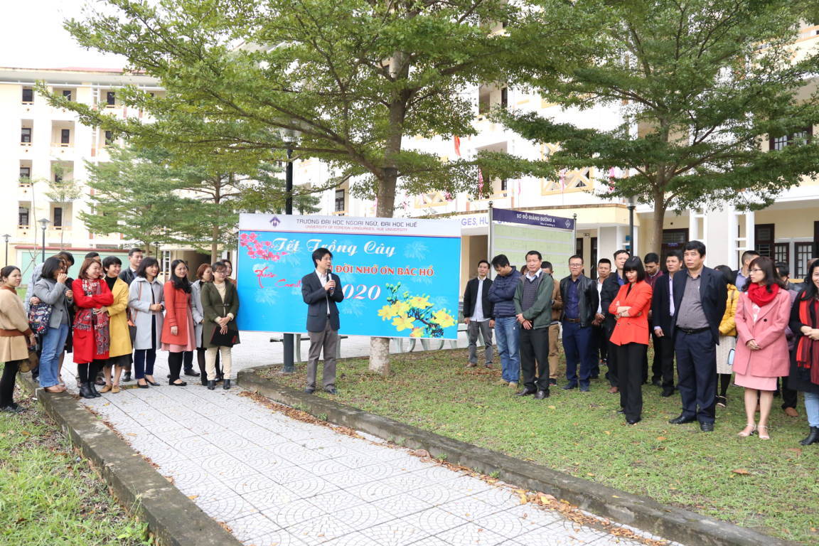 Phát biểu tại lễ phát động TS. Bảo Khâm, Bí thư Đảng ủy nhấn mạnh Tết trồng cây đời đời nhớ ơn Bác Hồ là một truyền thống tốt đẹp của dân tộc và cũng đã trở thành truyền thống của Nhà trường mỗi dịp xuân về. Nhân dịp này, tôi kêu gọi toàn thể CBVC, LĐ, HV, SV hãy hăng hái tham gia trồng cây để ngôi trường của chúng ta ngày càng xanh tươi để có một cảnh quan đẹp và tin tưởng rằng, năm nay với khí thế mới, quyết tâm mới, "Tết trồng cây đời đời nhớ ơn Bác Hồ" Xuân Canh Tý - 2020 sẽ đạt được nhiều thành quả tốt đẹp và gửi lời chúc đến toàn thể CBVC, LĐ, HV, SV Trường Đại học Ngoại ngữ một năm mới với nhiều thắng lợi mới.