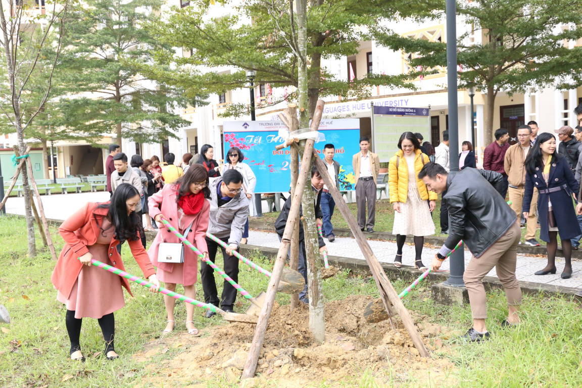 HUCFL- Sáng ngày 30/01 (6 Âm lịch), trong không khí của ngày làm việc đầu xuân Canh Tý 2020, Đảng ủy, Ban Giám hiệu Trường Đại học Ngoại ngữ, Đại học Huế đã tổ chức phát động Tết trồng cây đời đời nhớ ơn Bác Hồ. Như đã thành thông lệ, hàng năm trong ngày làm việc đầu năm Nhà trường tổ chức phát động Tết trồng cây đời đời nhớ ơn Bác Hồ đã trở thành một truyền thống tốt đẹp của tập thể CBVC, LĐ, SV Trường Đại học Ngoại ngữ.