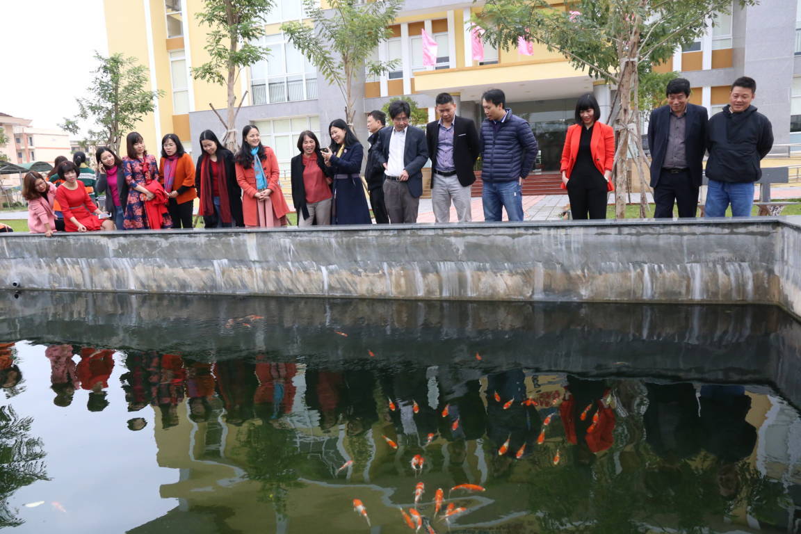 Lãnh đạo Nhà trường tham quan hồ Cá Koi trước Thư viện