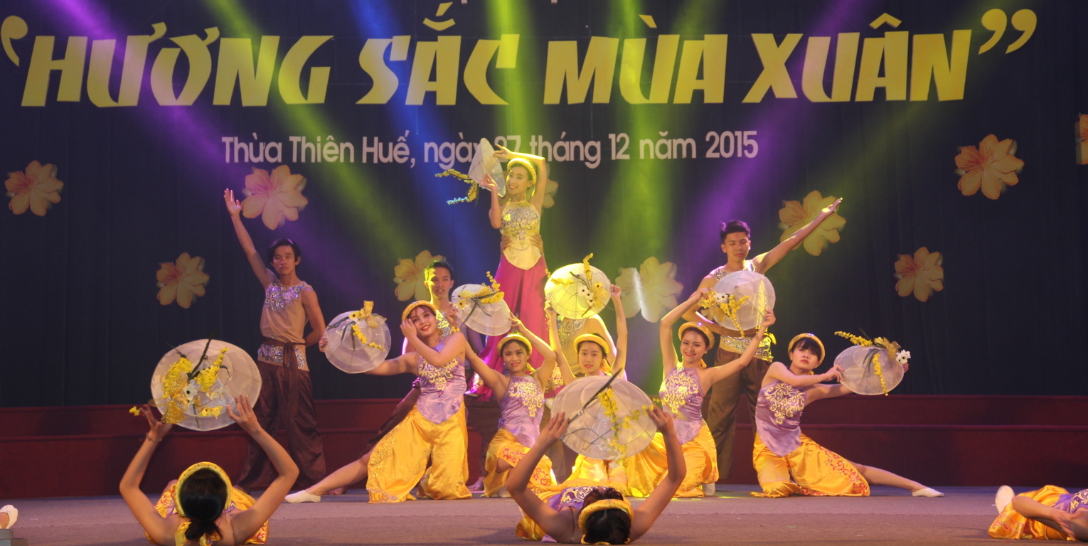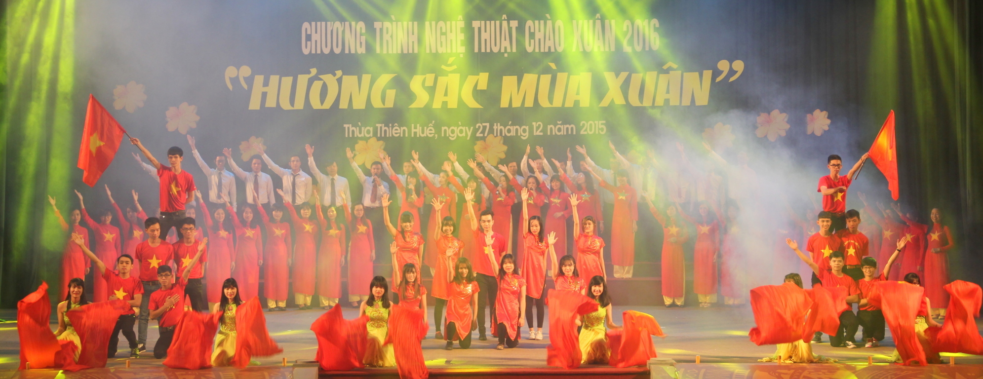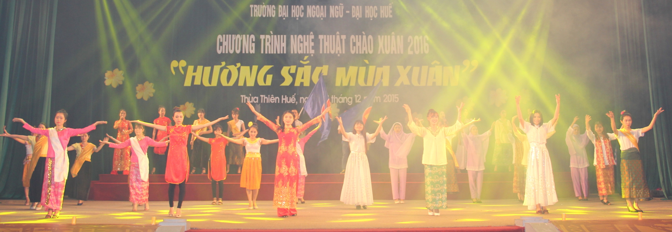 Tối ngày 27/12/2015, tại Nhà VHTT tỉnh, Đoàn TNCS Hồ Chí Minh phối hợp với Công đoàn Trường Đại học Ngoại ngữ tổ chức chương trình văn nghệ chào Xuân 2016, với chủ đề “Hương Sắc Mùa Xuân”.