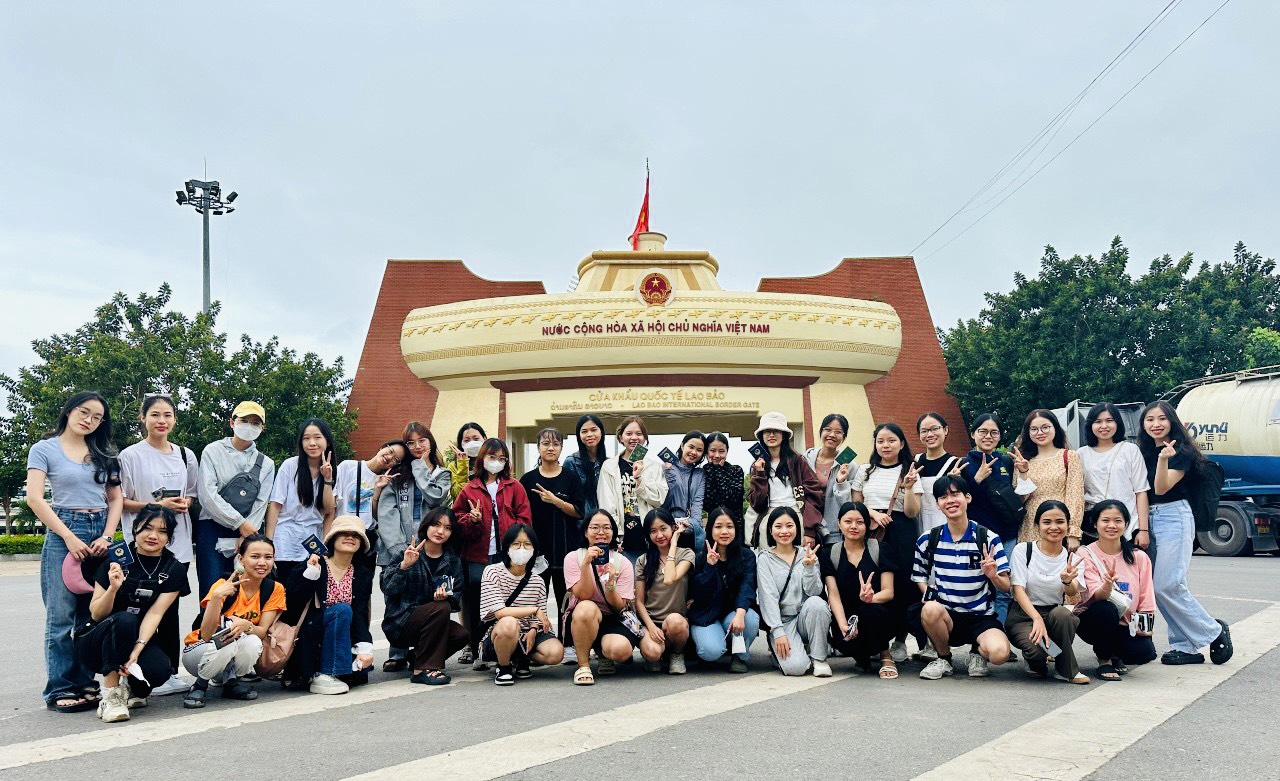 Đoàn sinh viên tại cửa khẩu Lao Bảo