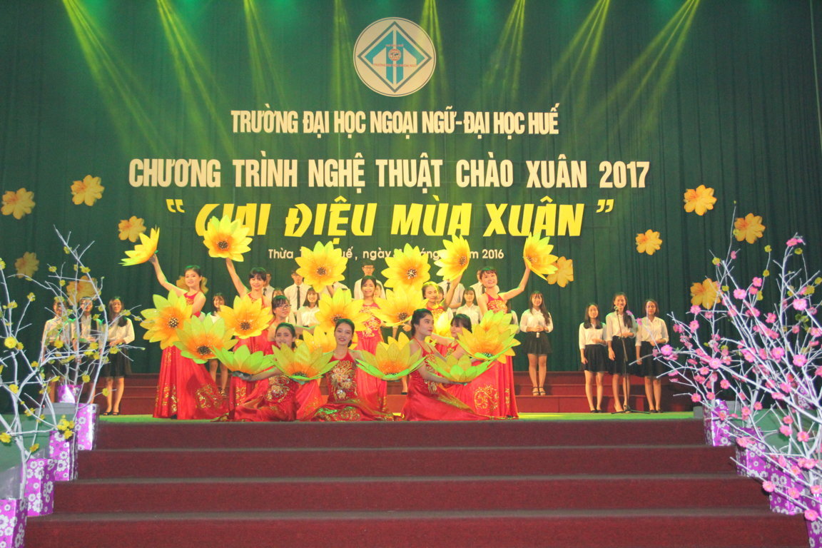 Với chủ đề "Giai Điệu Mùa Xuân" tố ngày 31 tháng 12 năm 2016, tại nhà Văn hóa TT tỉnh TT Huế, Trường Đại học Ngoại ngữ - Đại học Huế đã tổ chức thành công chương trình văn nghệ chào xuân 2017.