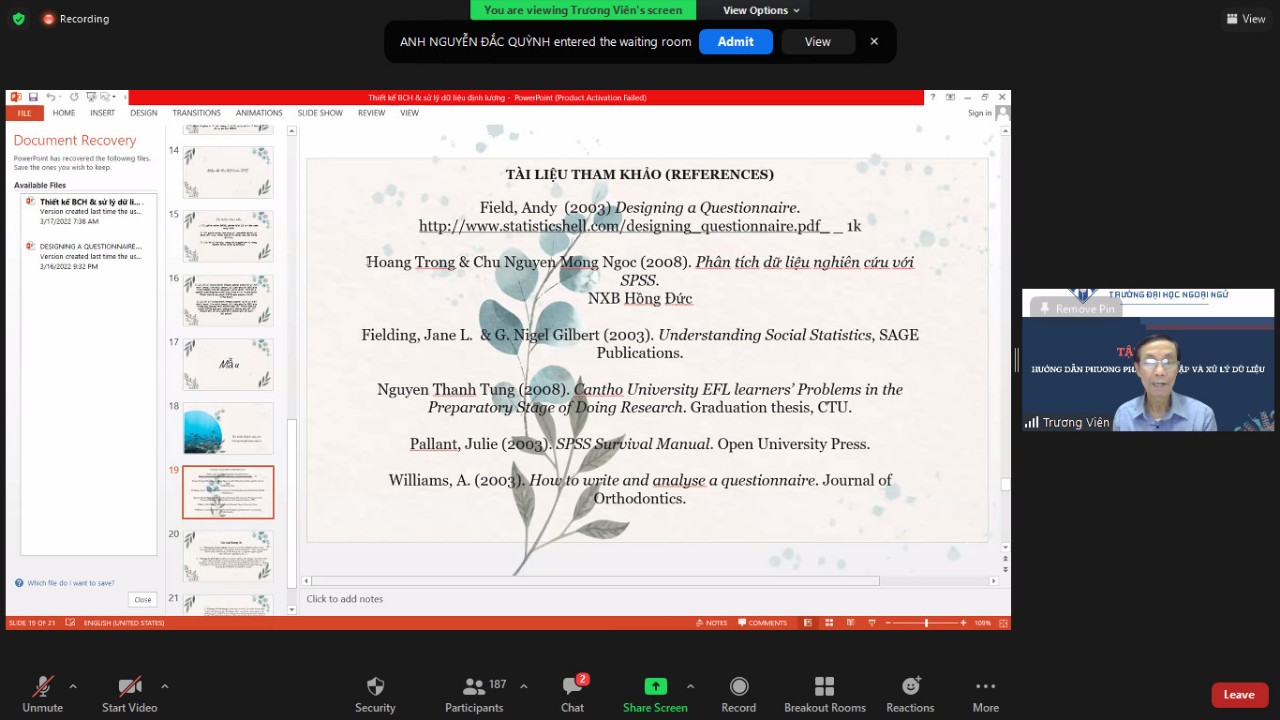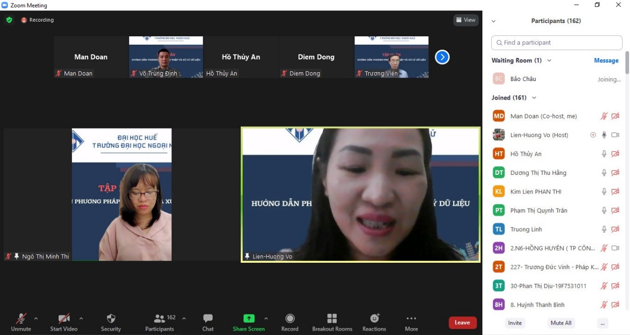 HUFL-Vào ngày 18/03/2022, Trường Đại học Ngoại ngữ, Đại học Huế đã tổ chức thành công Tập huấn “Hướng dẫn phương pháp thu thập và xử lý dữ liệu” theo hình thức trực tuyến trên nền tảng Zoom.