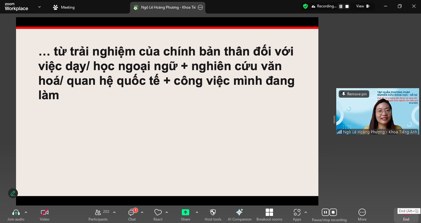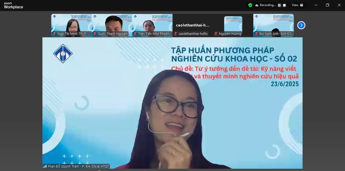 Tập huấn phương pháp nghiên cứu khoa học (số 02) - Chủ đề: “Từ ý tưởng đến đề tài: Kỹ năng viết đề xuất và thuyết minh nghiên cứu hiệu quả” 23-06-2025